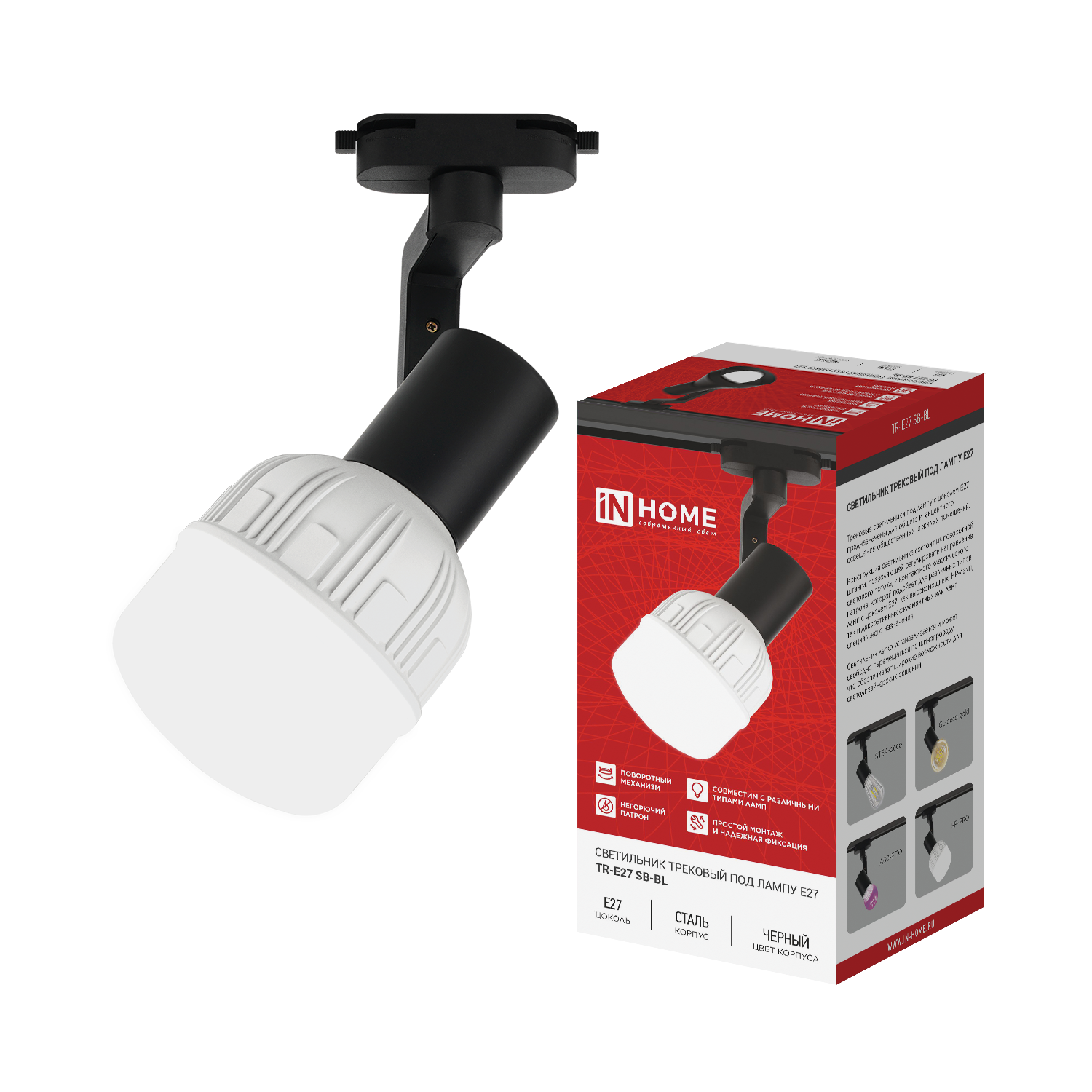Светильник трековый TR-E27 SB-BL под E27 черный IN HOME
