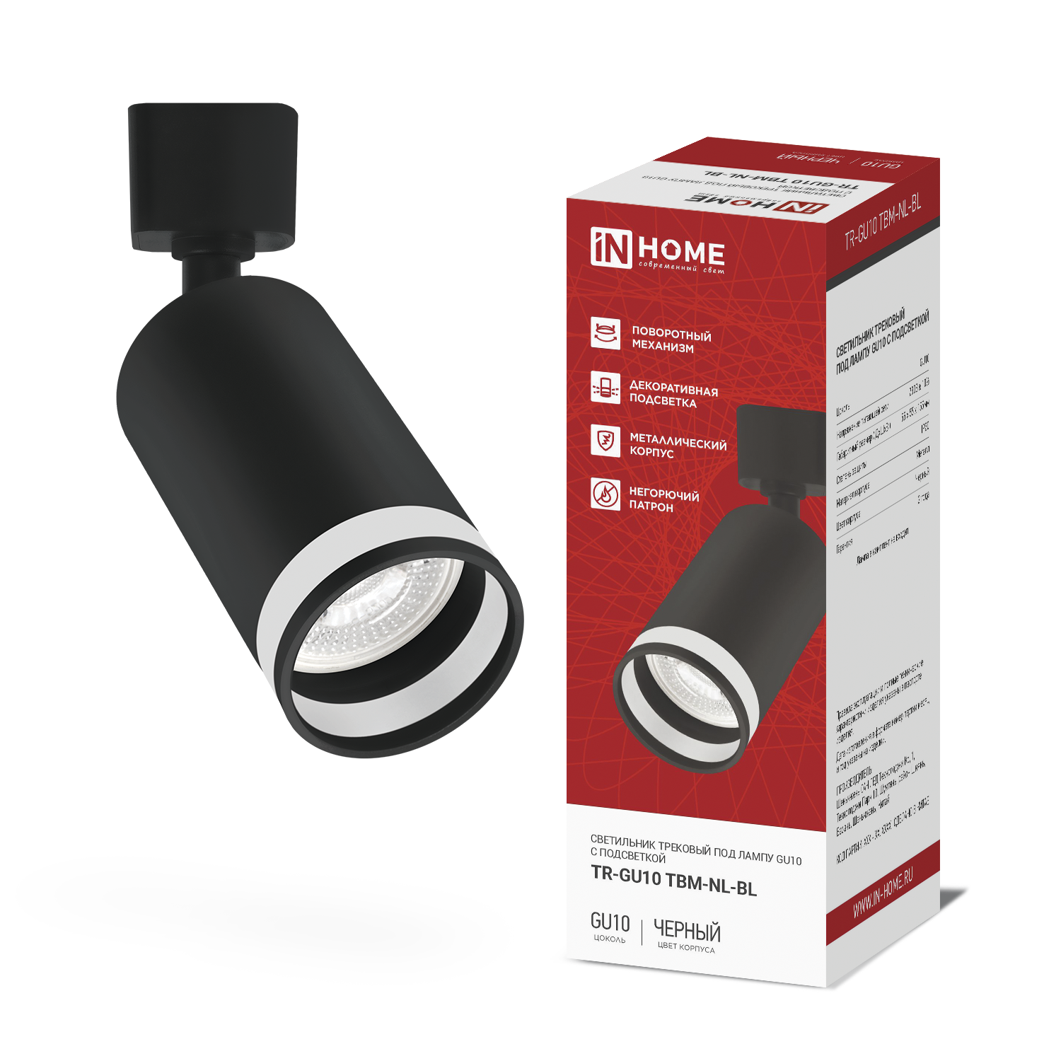 Светильник трековый TR-GU10 TBM-NL-BL под GU10 с подсветкой черный IN HOME