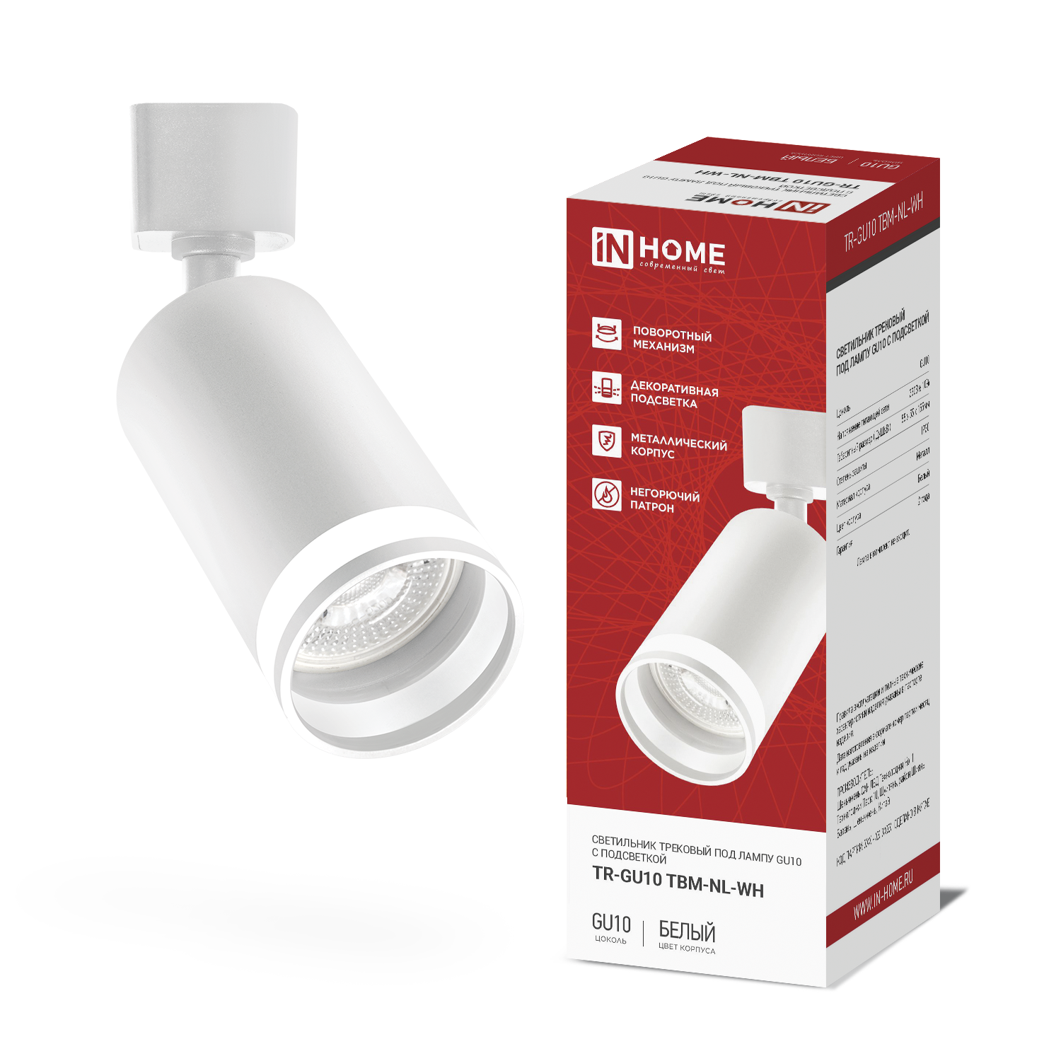 Светильник трековый TR-GU10 TBM-NL-WH под GU10 с подсветкой белый IN HOME