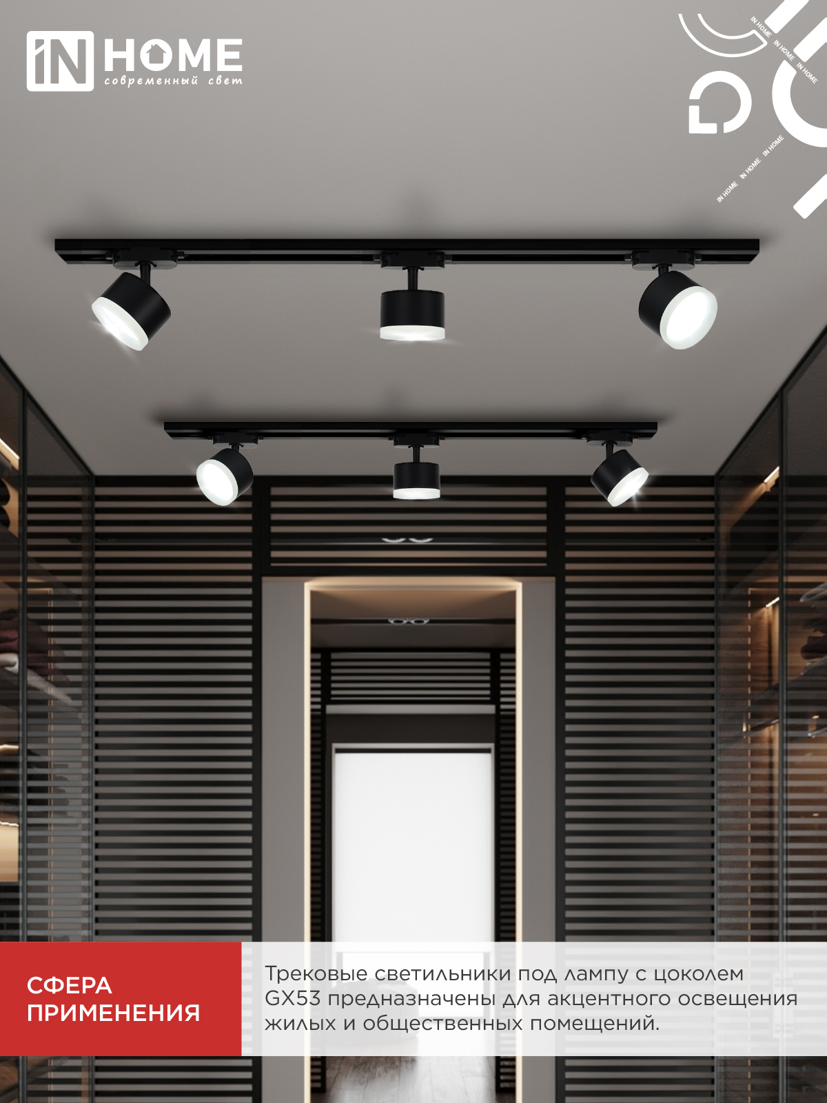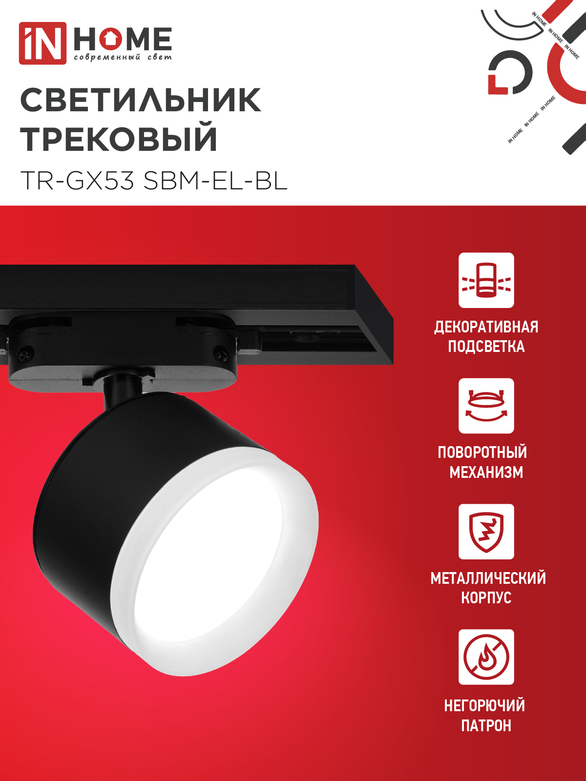 Светильник трековый TR-GX53 SBM-EL-BL с подсветкой черный IN HOME