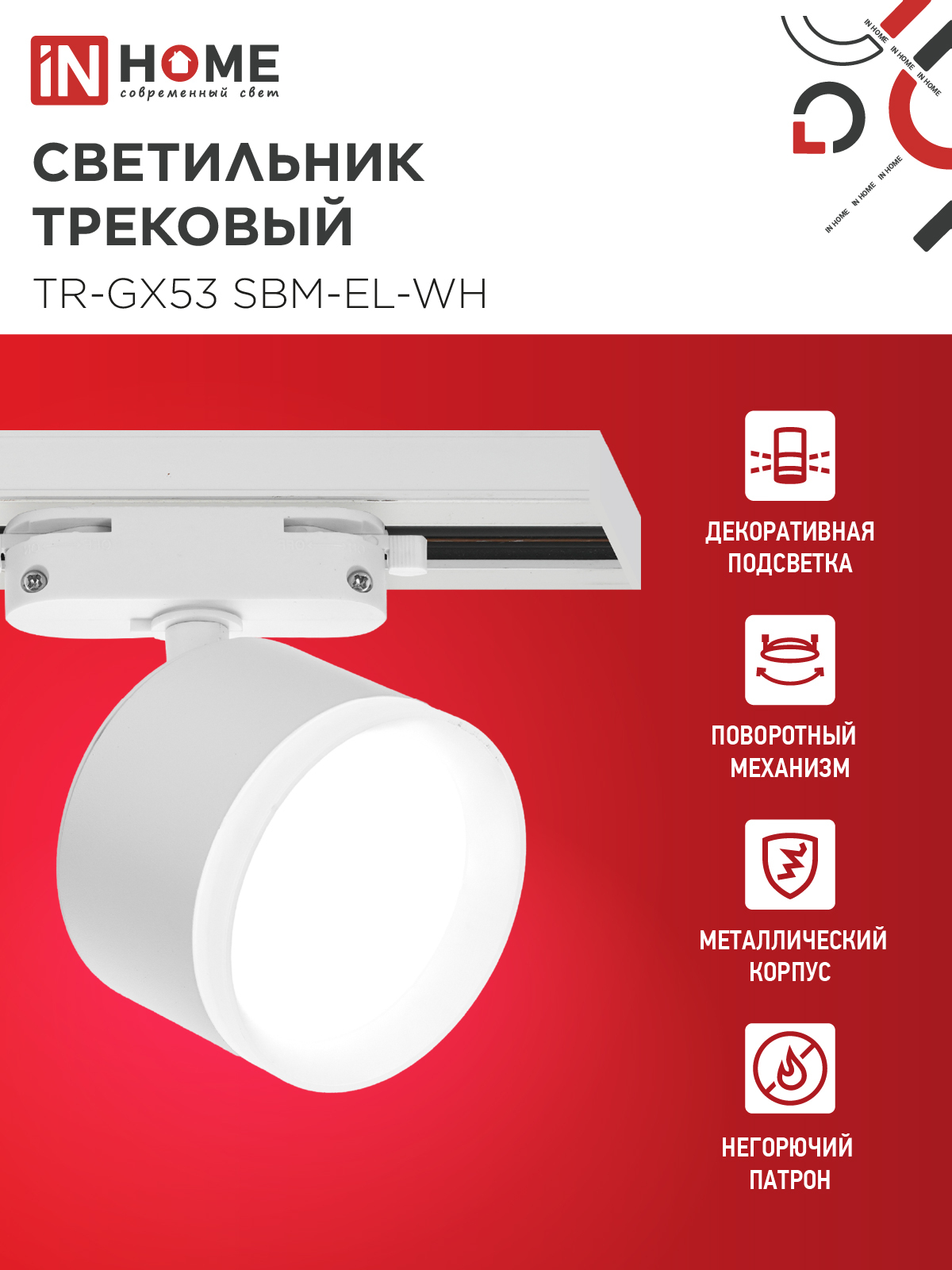 Светильник трековый TR-GX53 SBM-EL-WH с подсветкой белый IN HOME