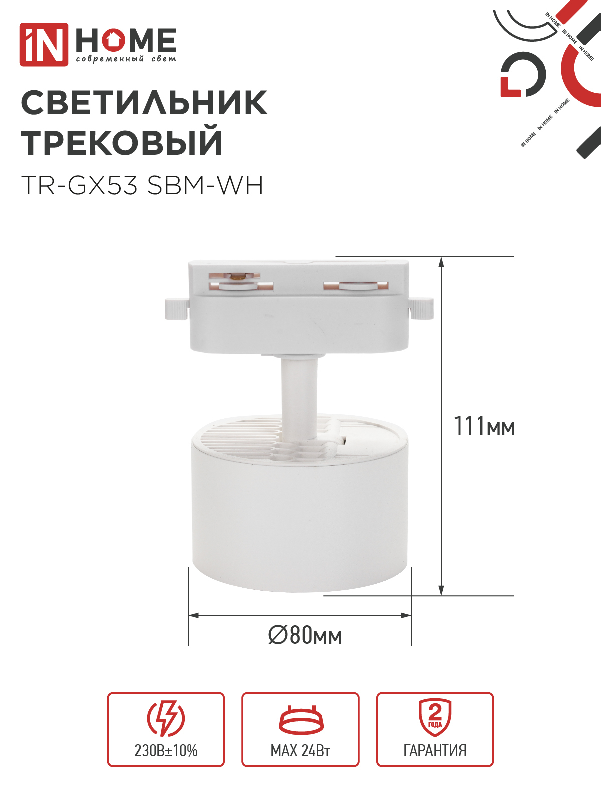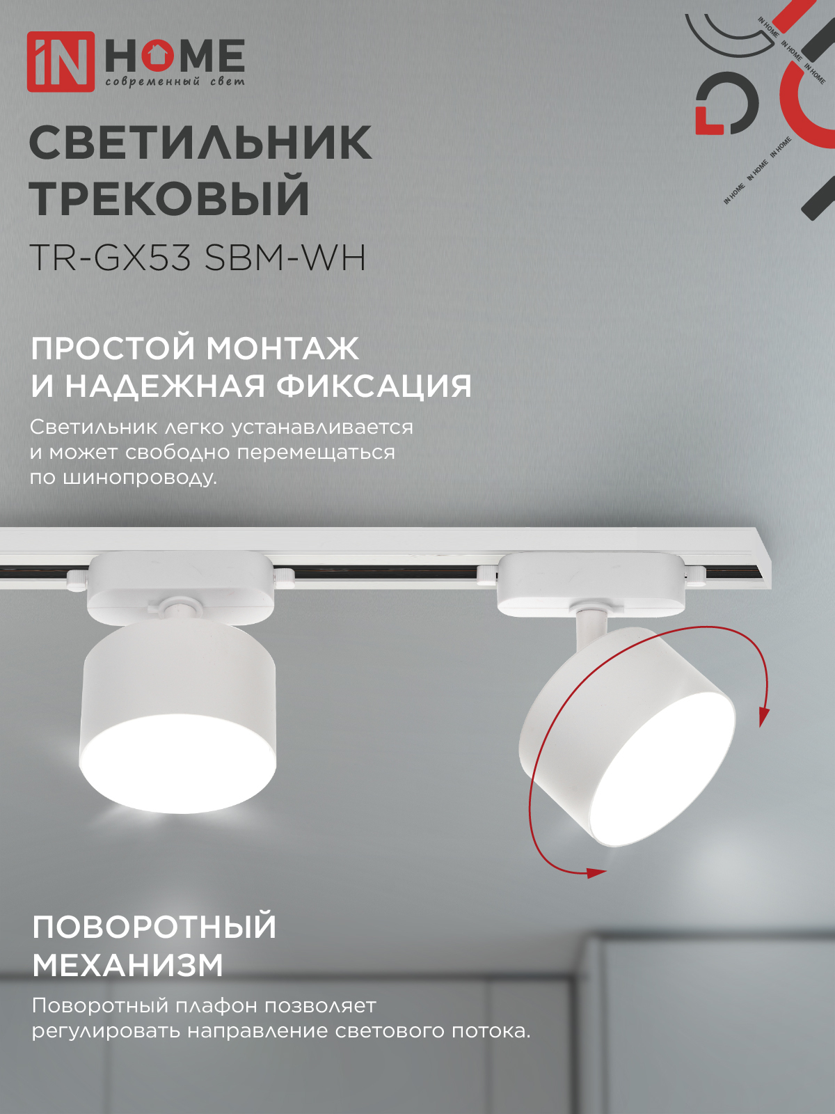 Светильник трековый TR-GX53 SBM-WH белый IN HOME