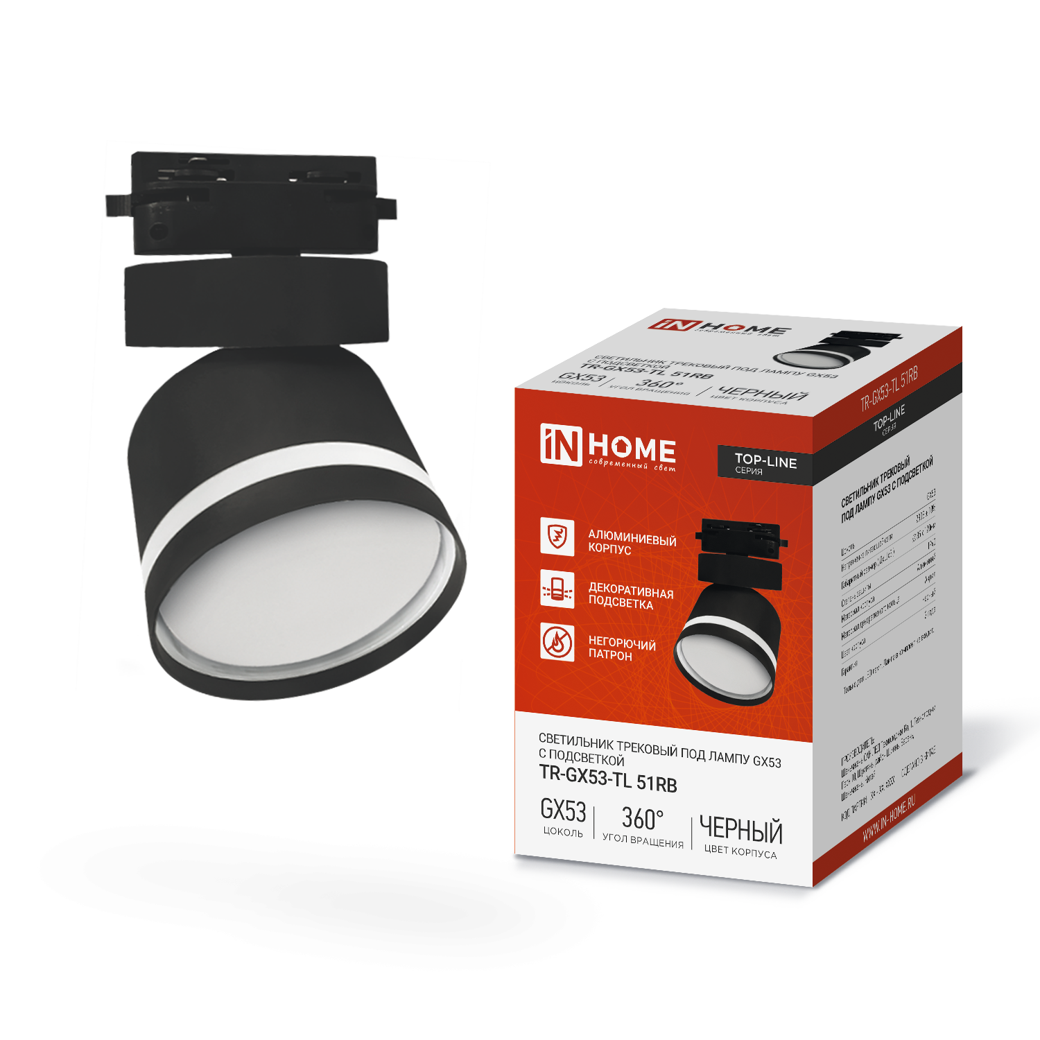 Светильник трековый TR-GX53-TL 51RB под лампу GX53 с подсветкой черный IN HOME