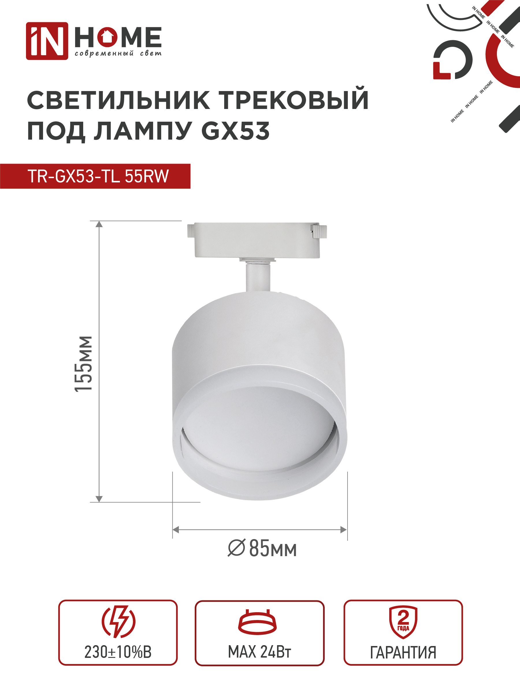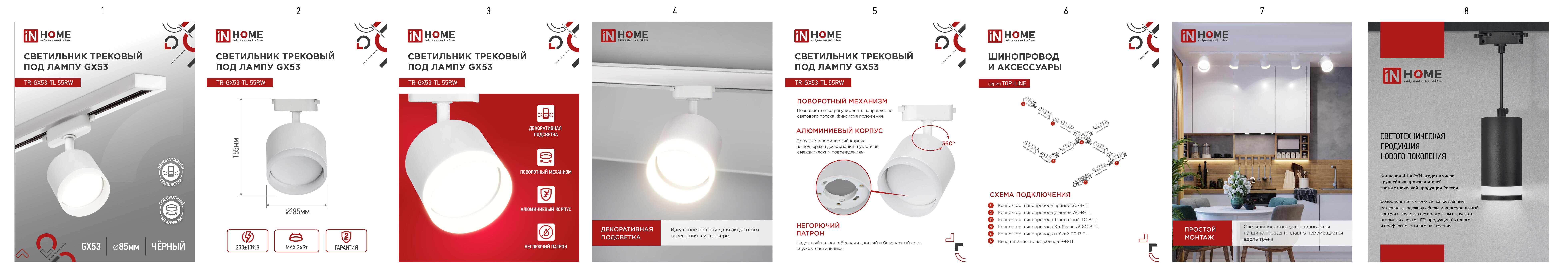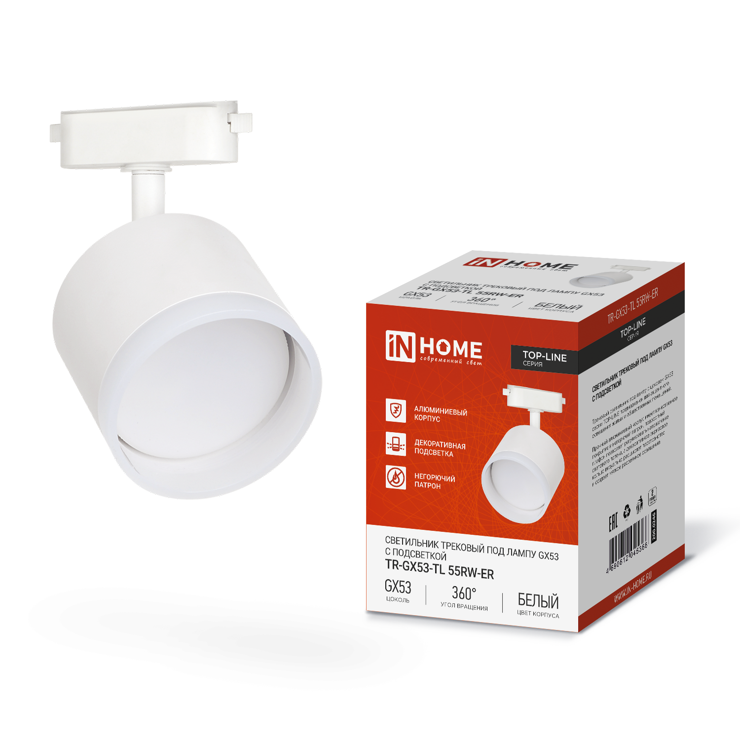 Светильник трековый TR-GX53-TL 55RW-ER под лампу GX53 с подсветкой белый IN HOME