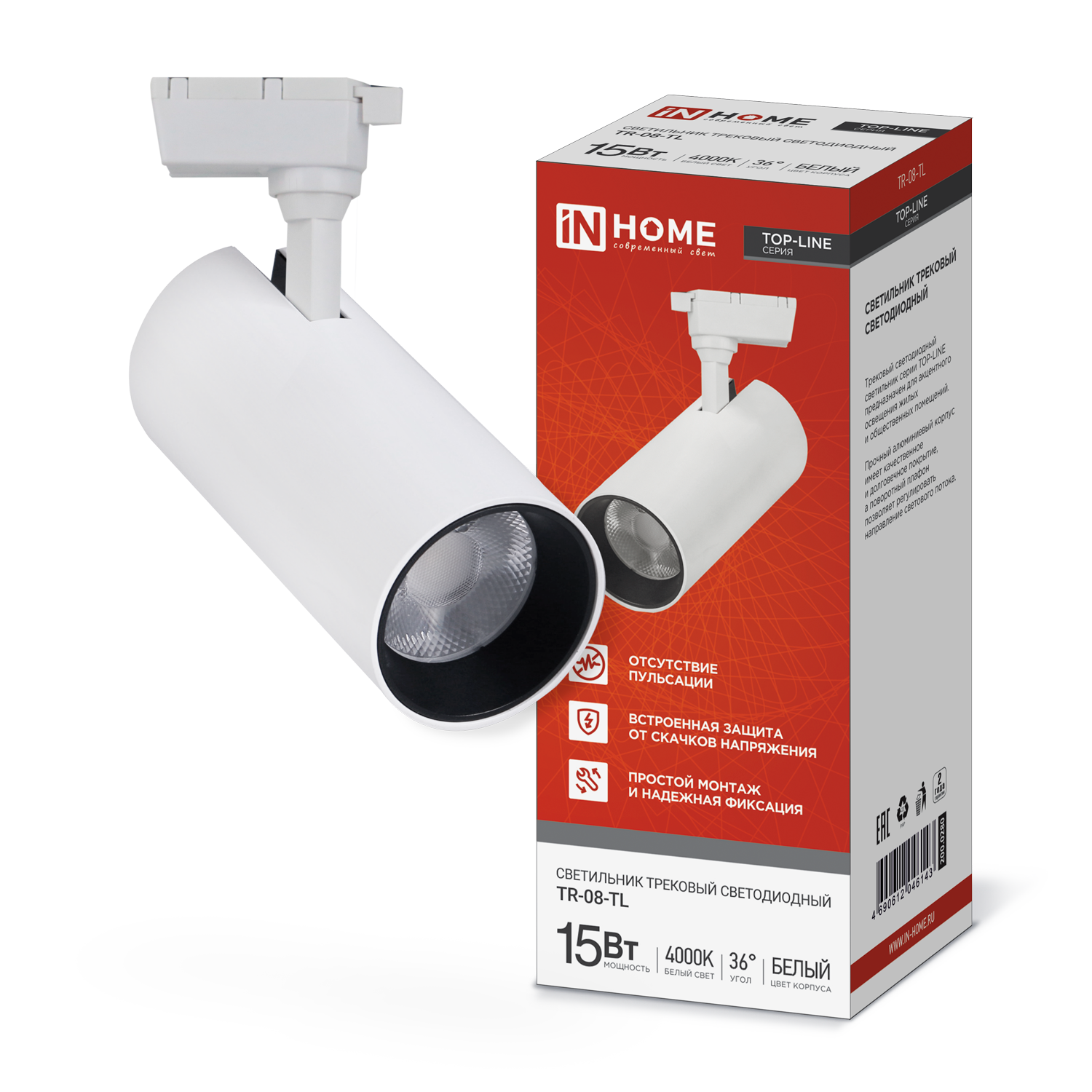 Светильник трековый светодиодный TR-08-TL 15Вт 4000К 1500Лм IP40 36 градусов белый серии TOP-LINE IN HOME