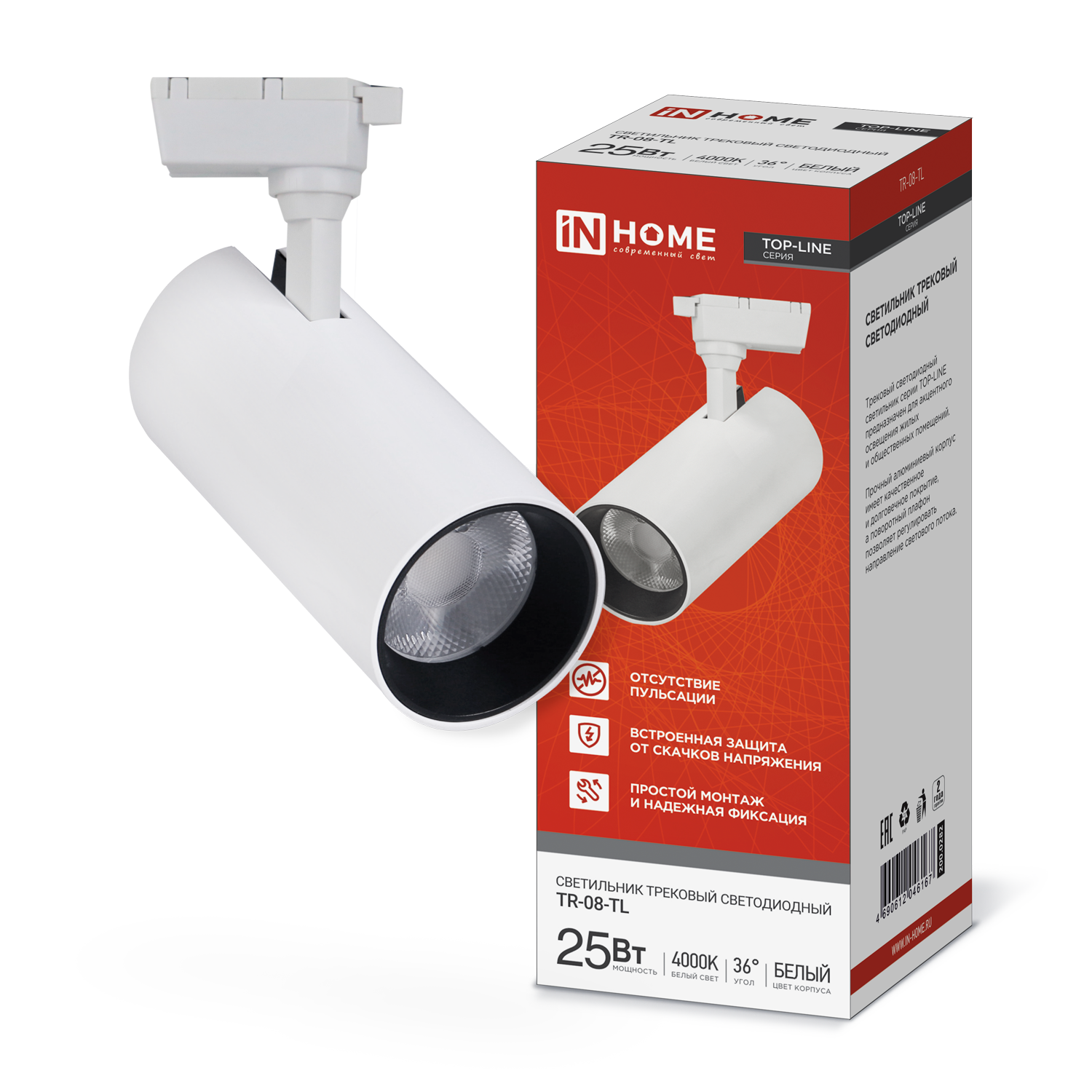 Светильник трековый светодиодный TR-08-TL 25Вт 4000К 2500Лм IP40 36 градусов белый серии TOP-LINE IN HOME
