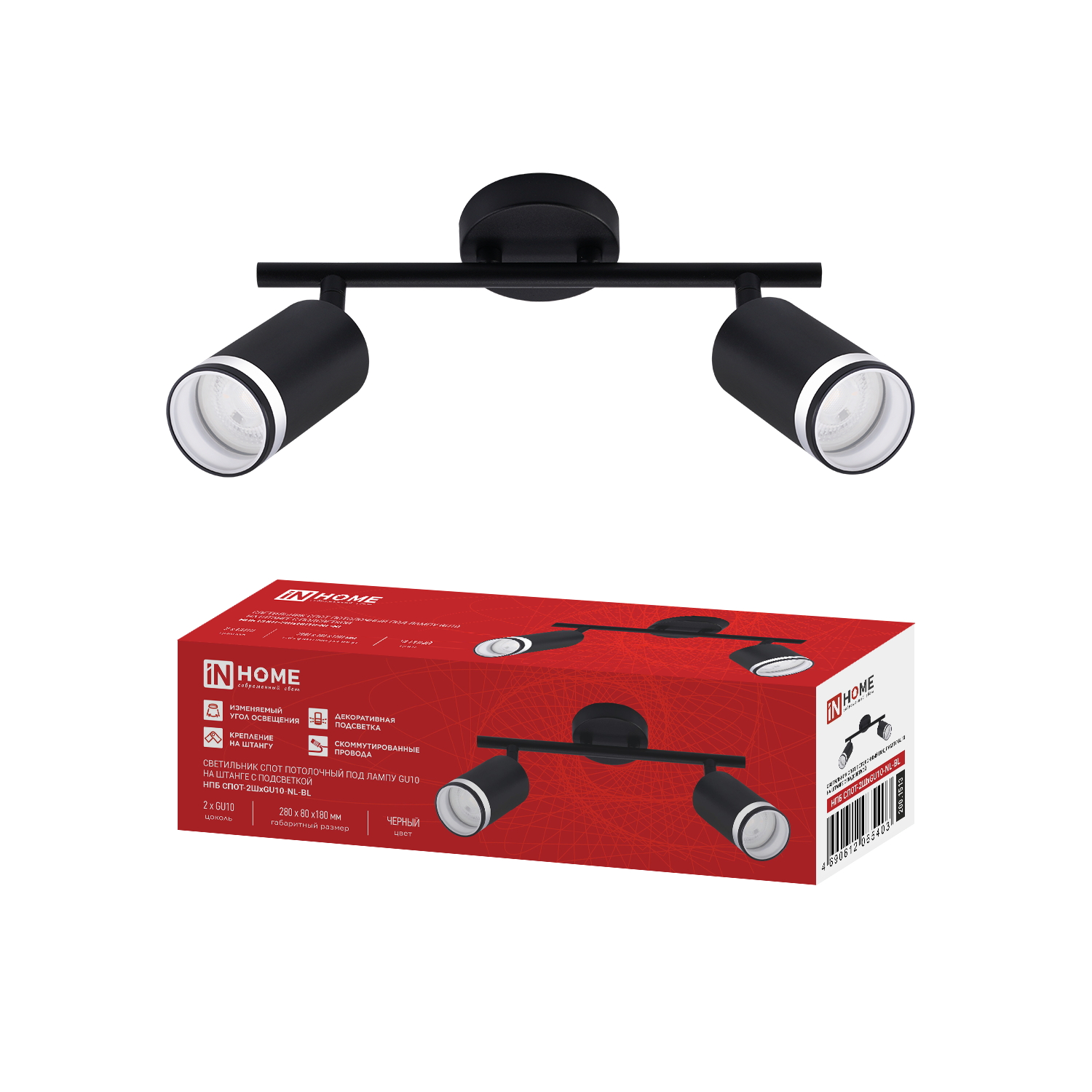 Светильник потолочный НПБ СПОТ-2xGU10-AR-WH под лампу GU10 260х55х135мм линейный белый IN HOME