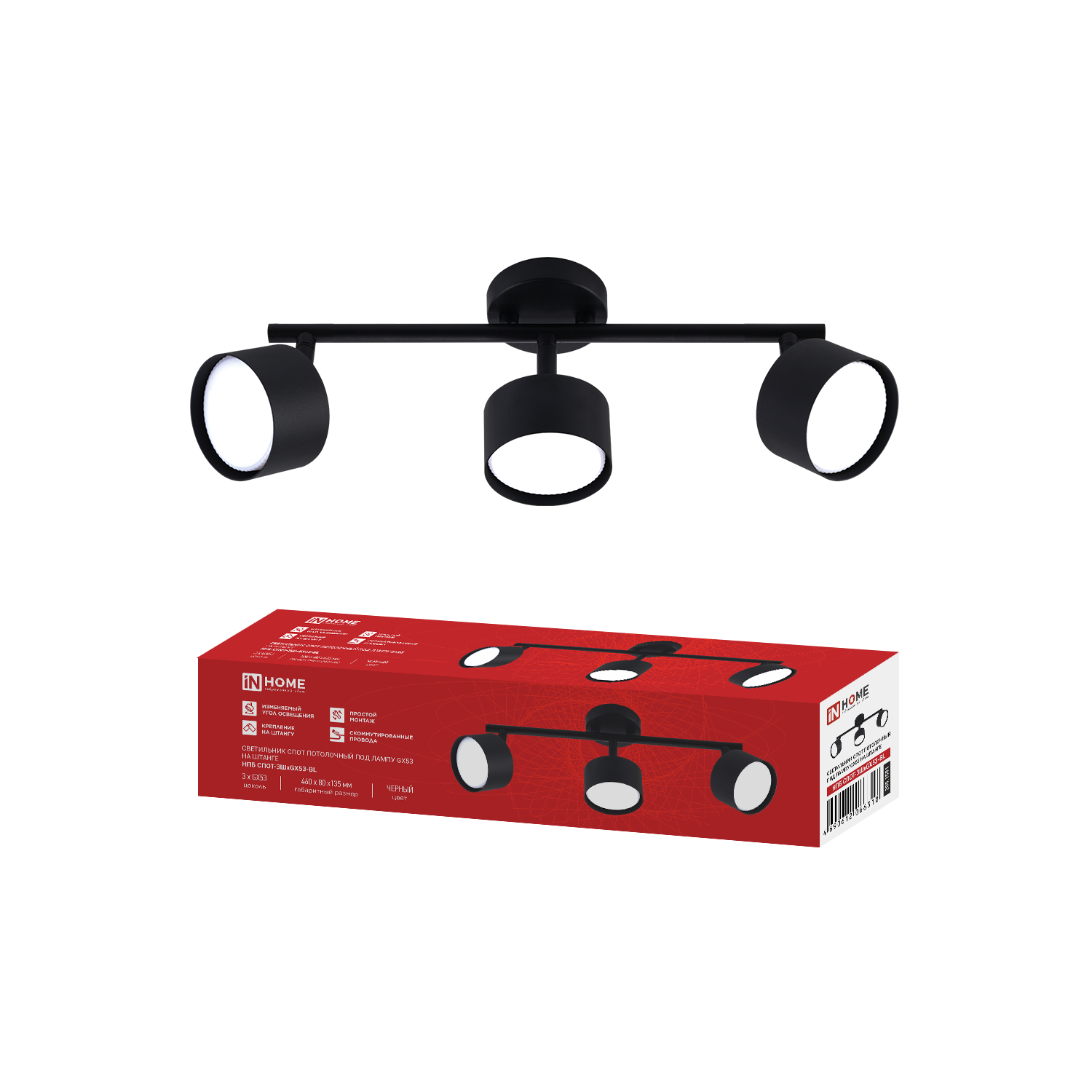 Светильник потолочный НПБ-СПОТ-GX53 2хSBM-NL-BL с подсветкой 220x80x90мм черный IN HOME во Владивостоке
