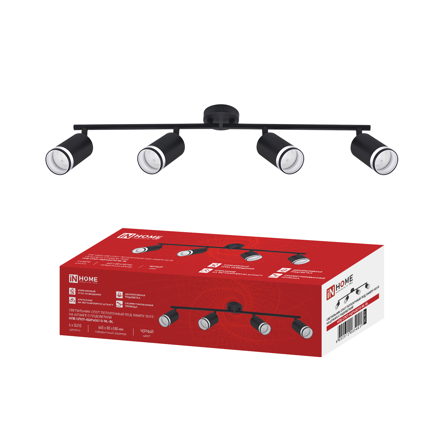 Светильник потолочный НПБ СПОТ-4xGU10-AR-BL под GU10 595x55x135мм черный IN HOME