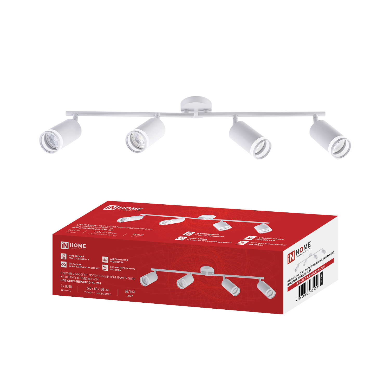 Светильник потолочный НПБ СПОТ-3RxGU10-AR-WH под GU10 с круглой базой белый IN HOME
