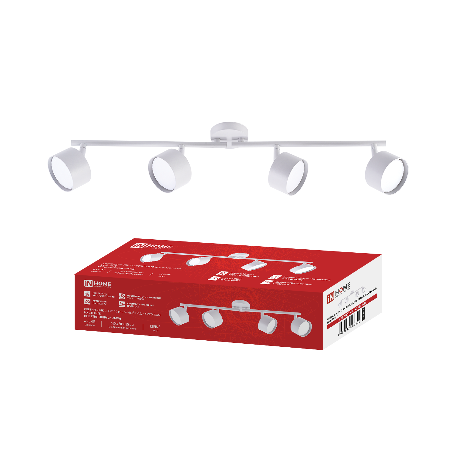 Светильник потолочный НПБ СПОТ-6ExGU10-AR-WH под GU10 с регулир. базой белый IN HOME