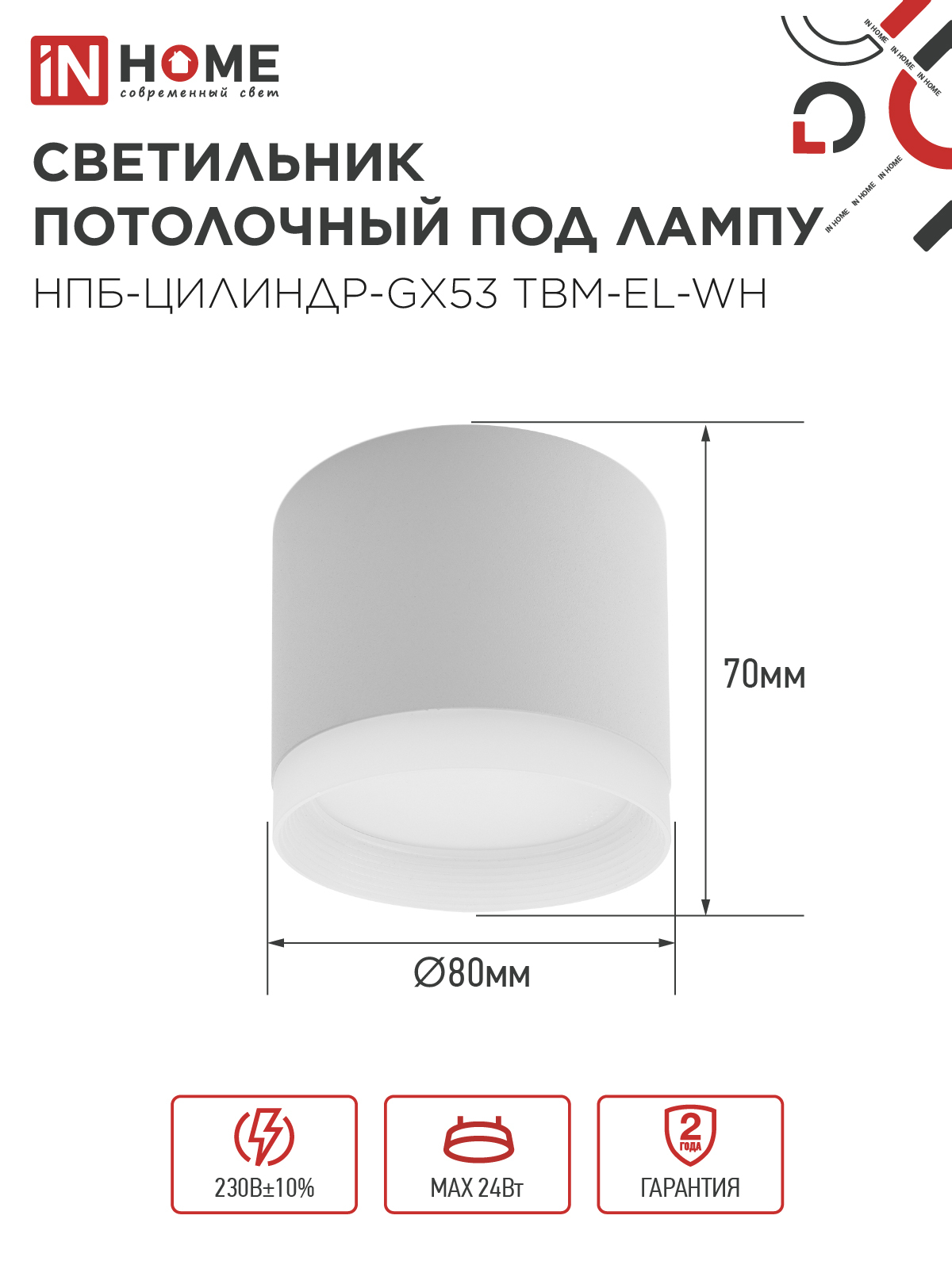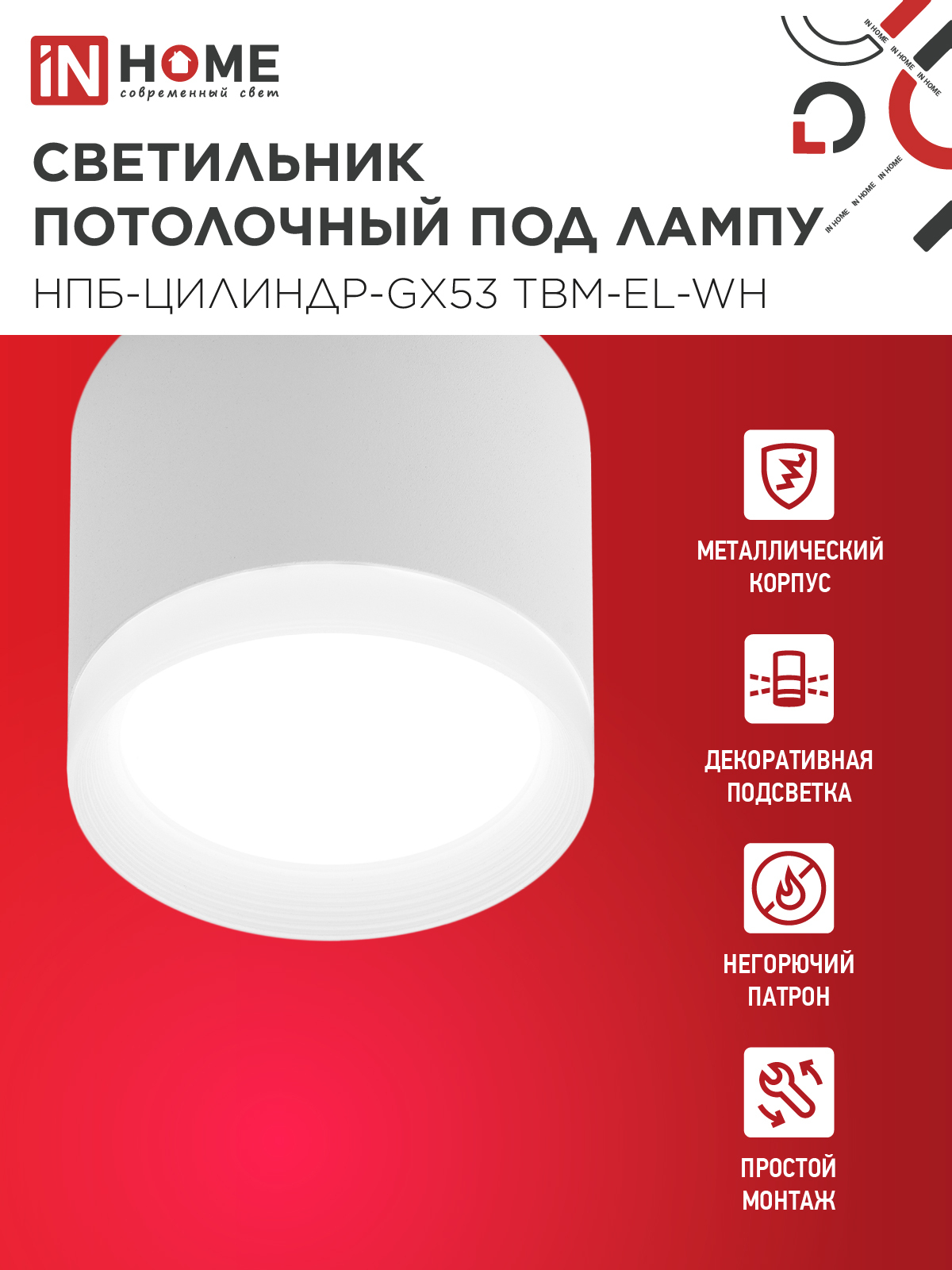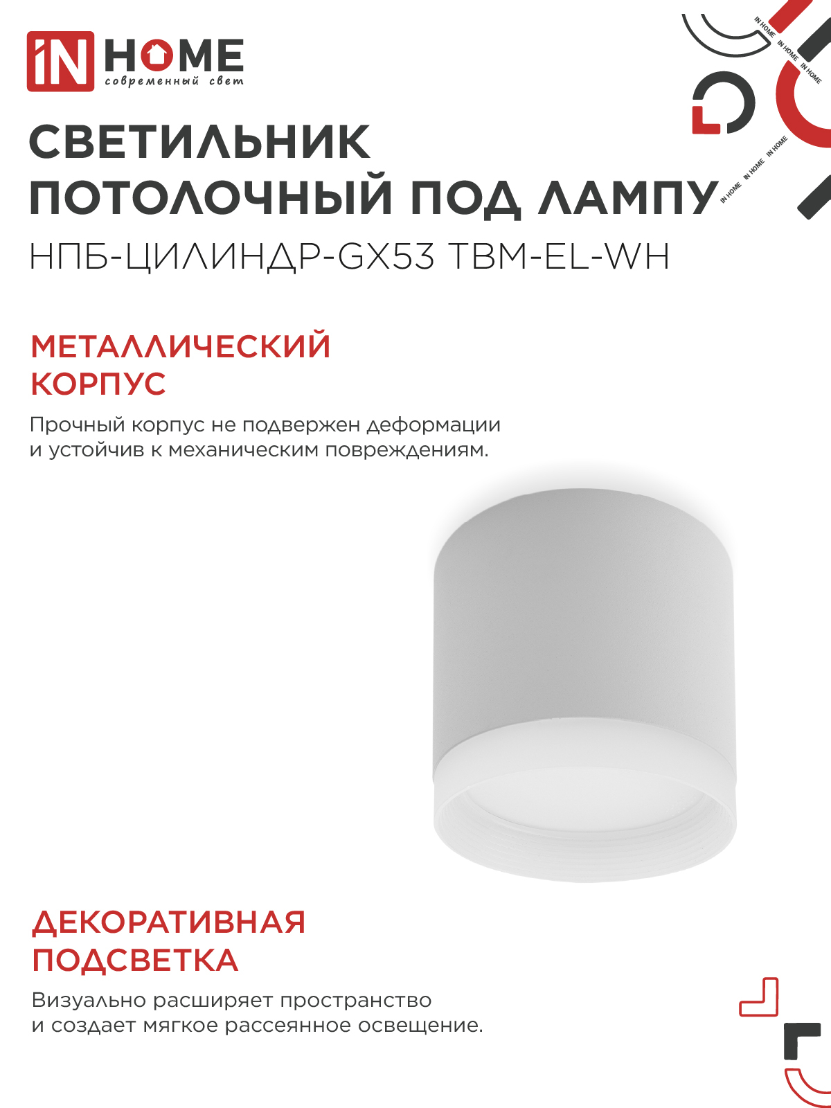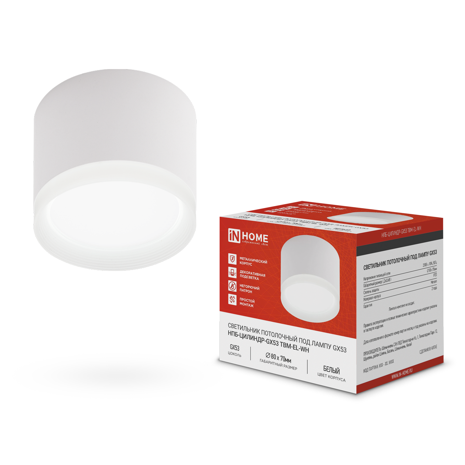 Светильник потолочный НПБ-ЦИЛИНДР-GX53 TBM-EL-WH с подсветкой 80х70мм белый IN HOME