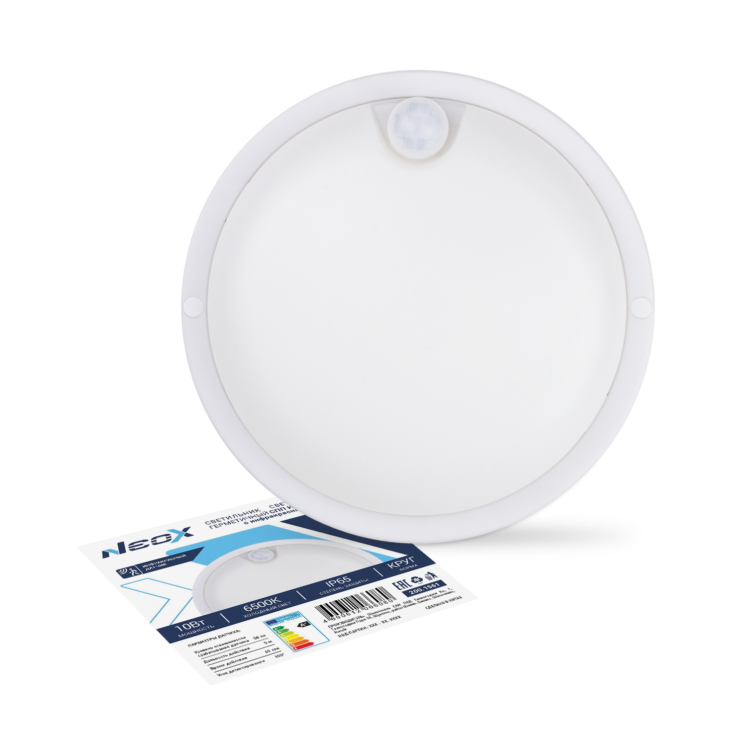 Светильник светодиодный герметичный СПП ИД-1065-КРУГ 10Вт 6500К 900Лм с инфракрасн датчиком IP65 140мм NEOX