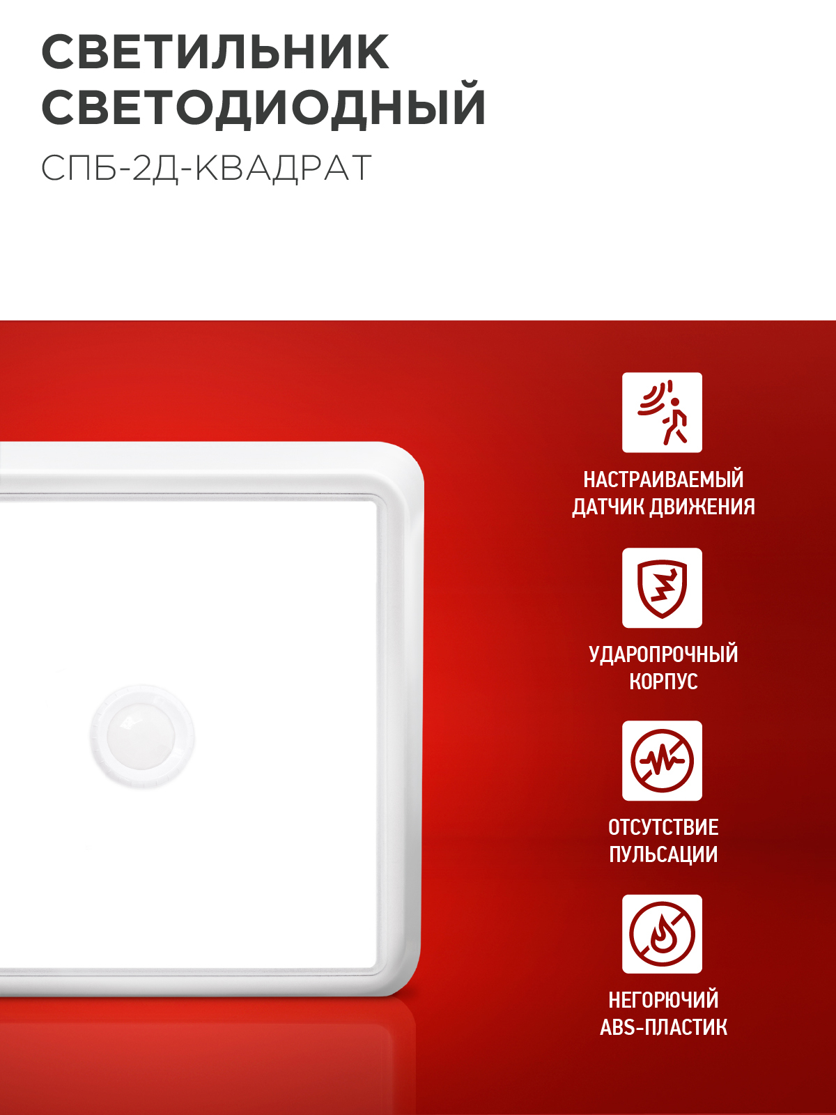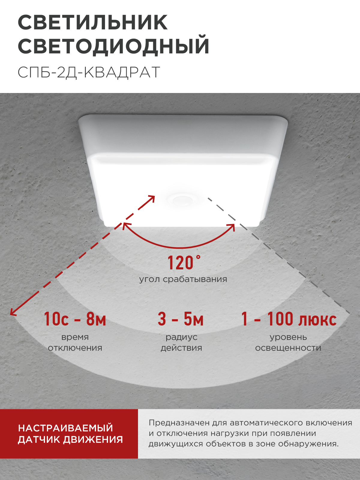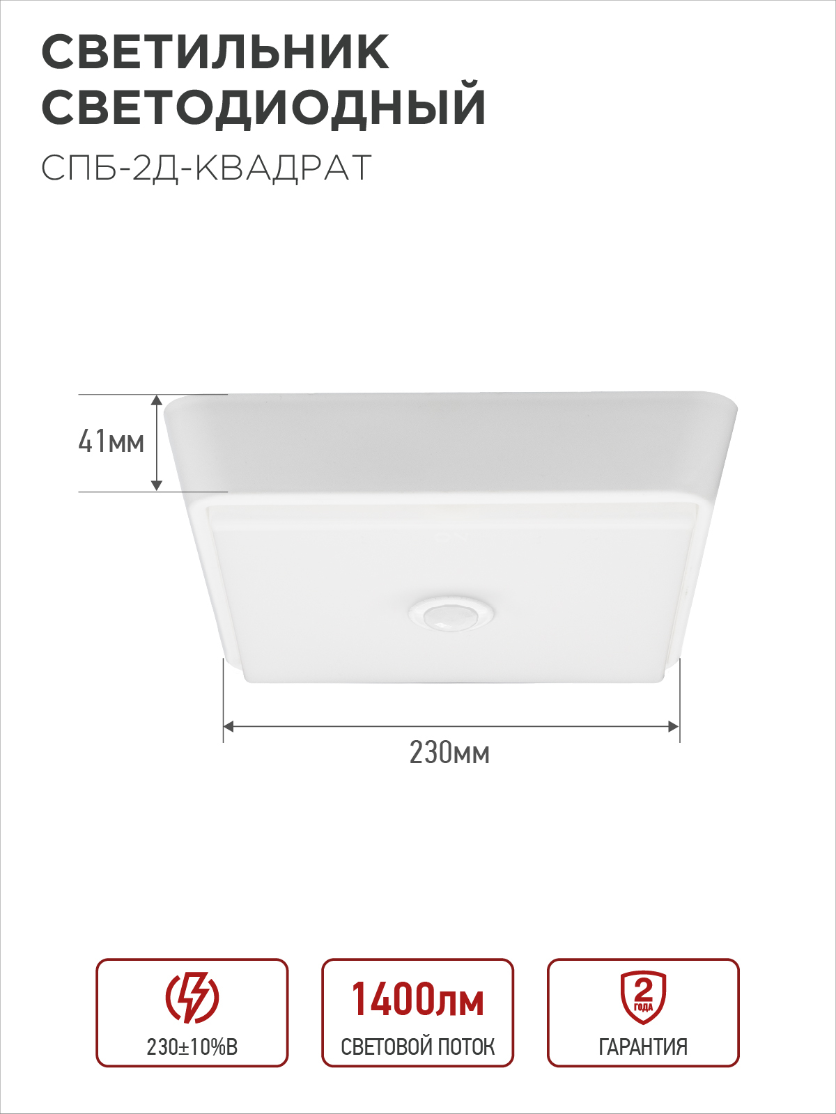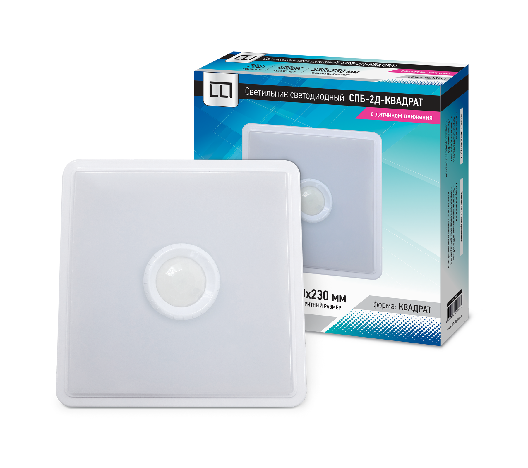 Светильник светодиодный СПБ-2Д-КВАДРАТ 20Вт 230В 4000К 1400Лм 230мм с датчиком движения белый LLT