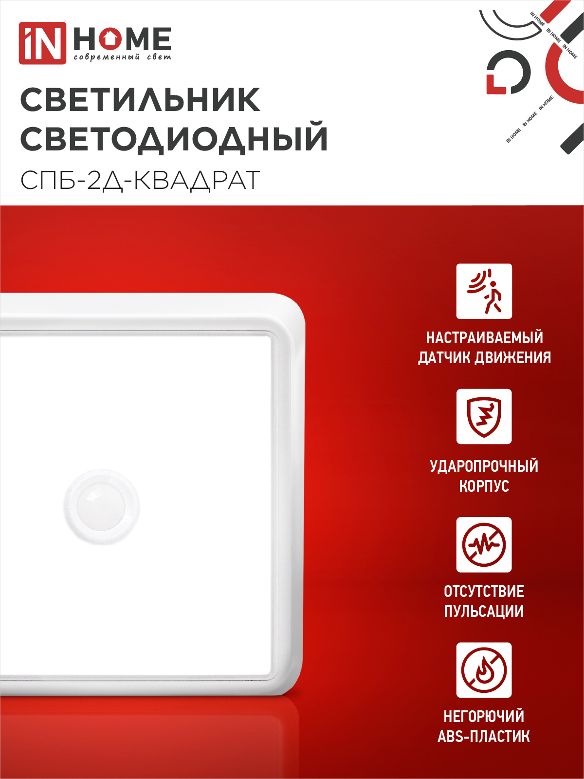Светильник светодиодный СПБ-2Д-КВАДРАТ 20Вт 4000К 1400Лм 230мм с датчиком белый IN HOME