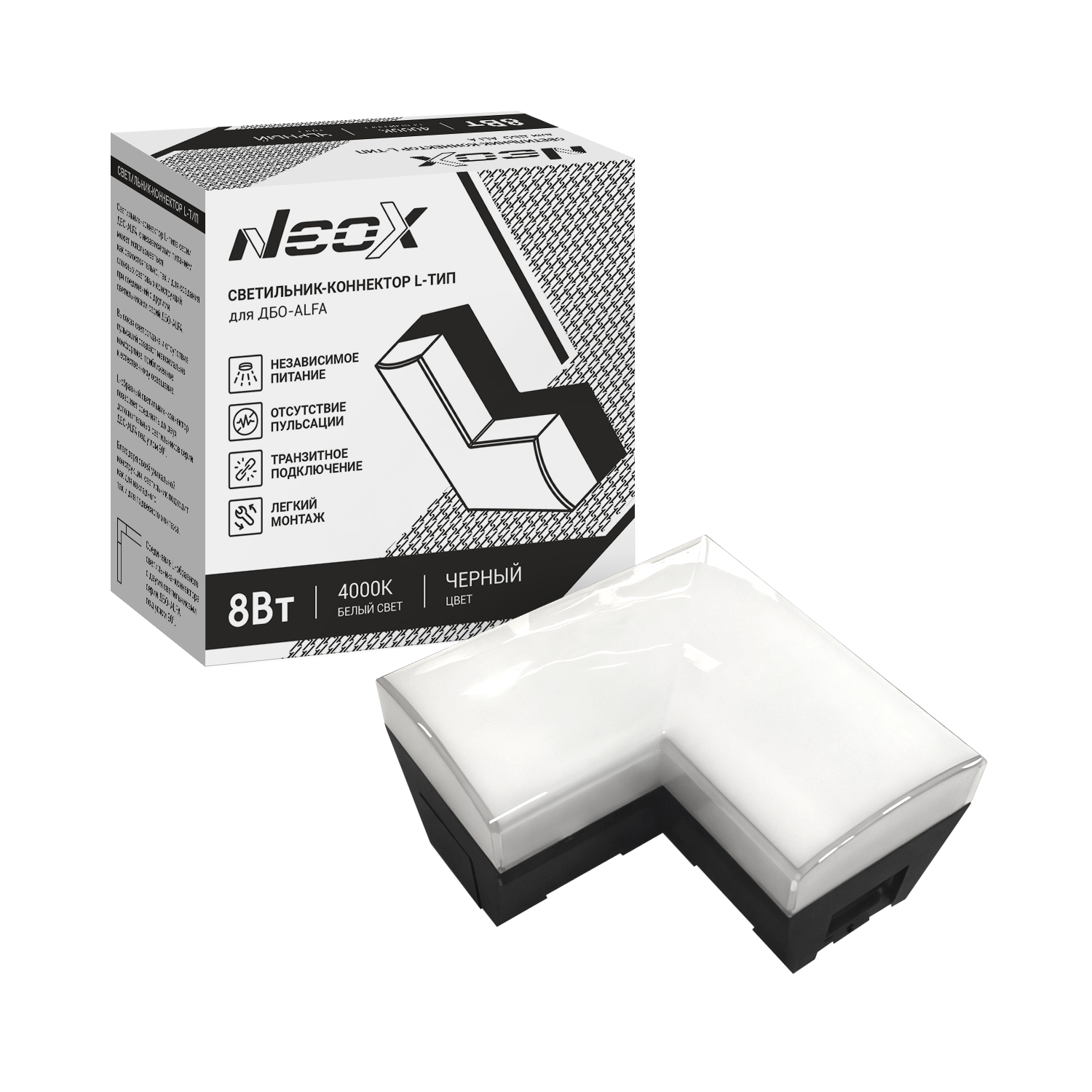 Светильник-коннектор L-тип для ДБО-ALFA 8Вт 230В 6500К черный IP40 NEOX