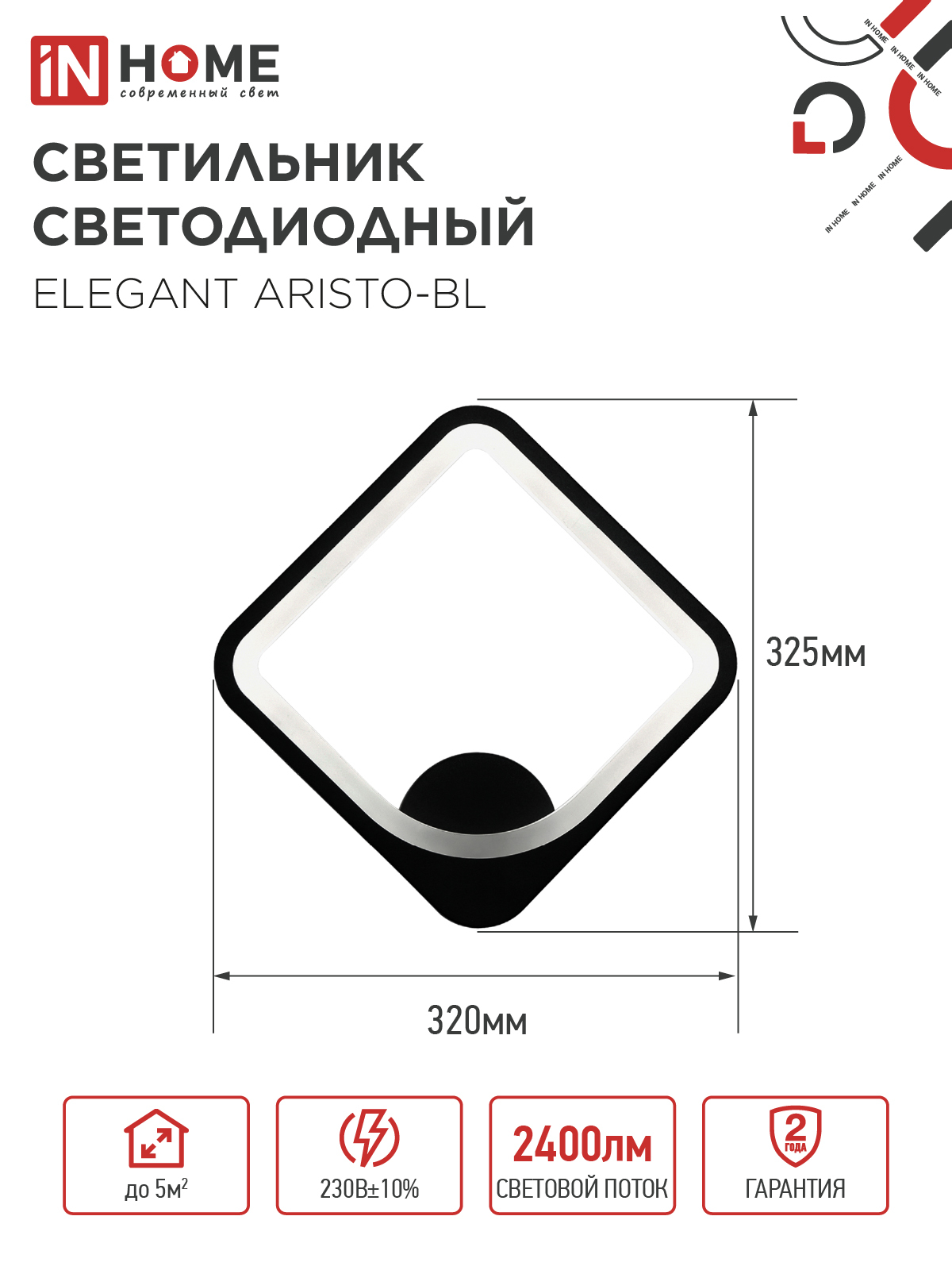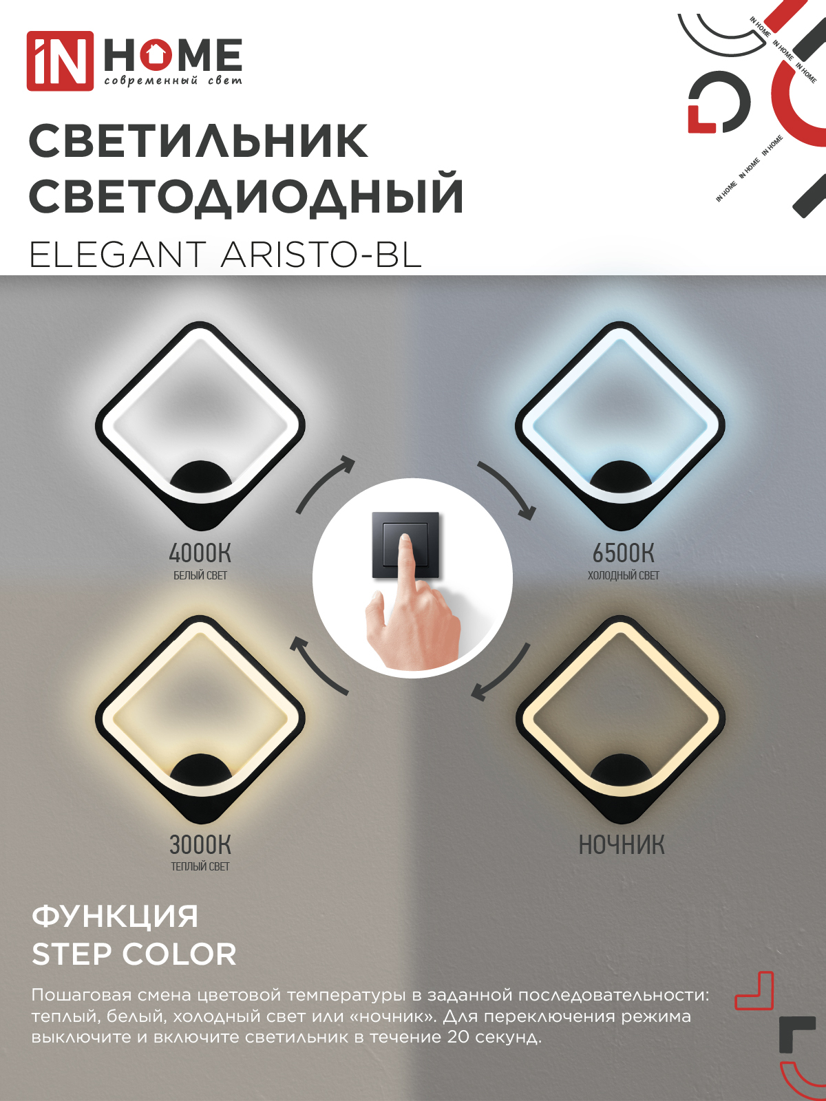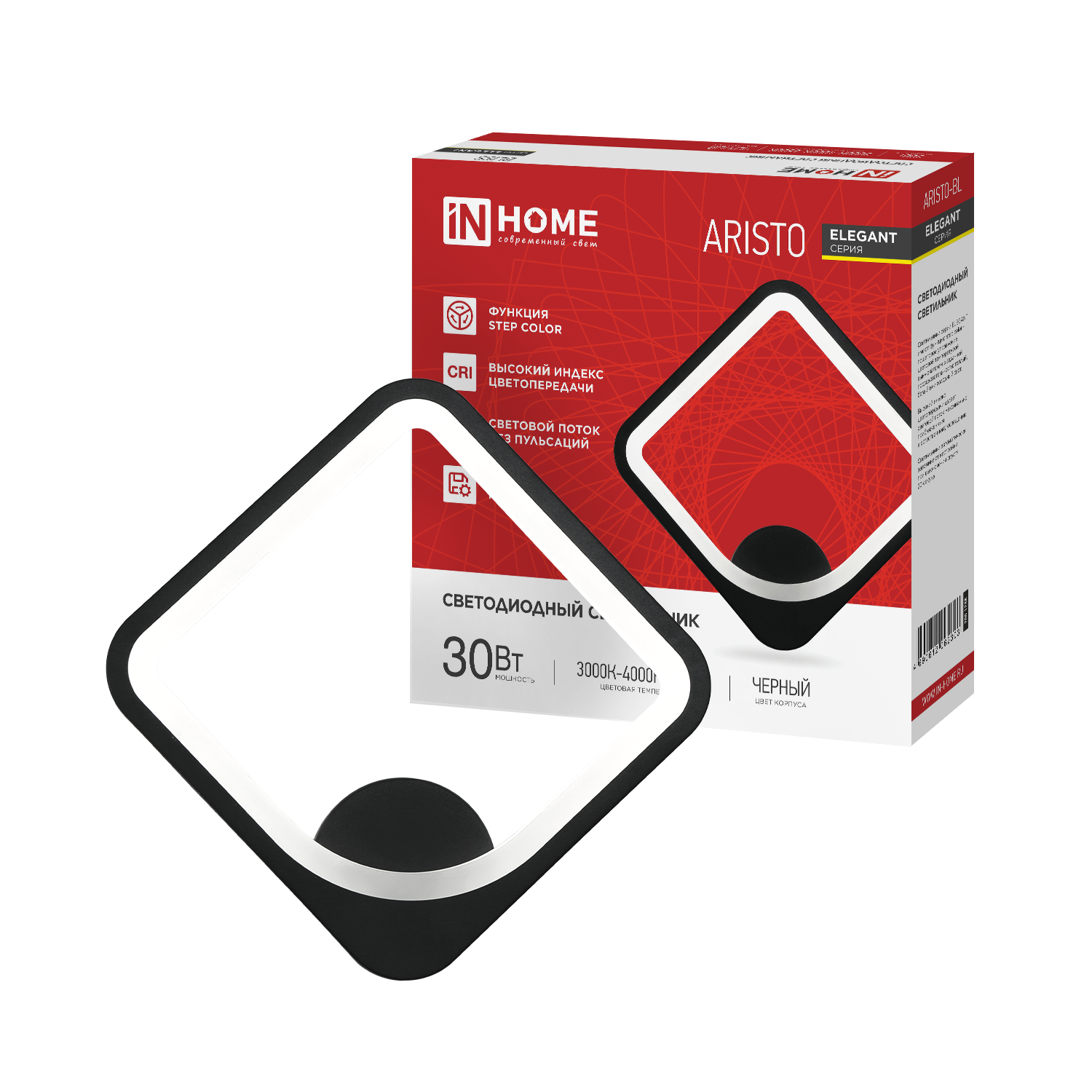 Светильник светодиодный ELEGANT ARISTO-BL 30Вт 230В 3000-6500K 2400Лм STEP COLOR черный IN HOME