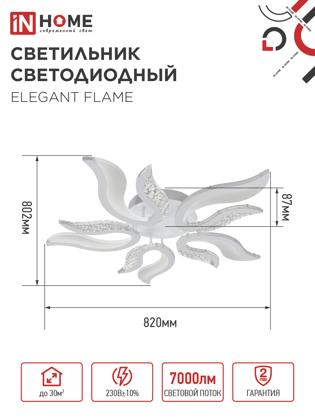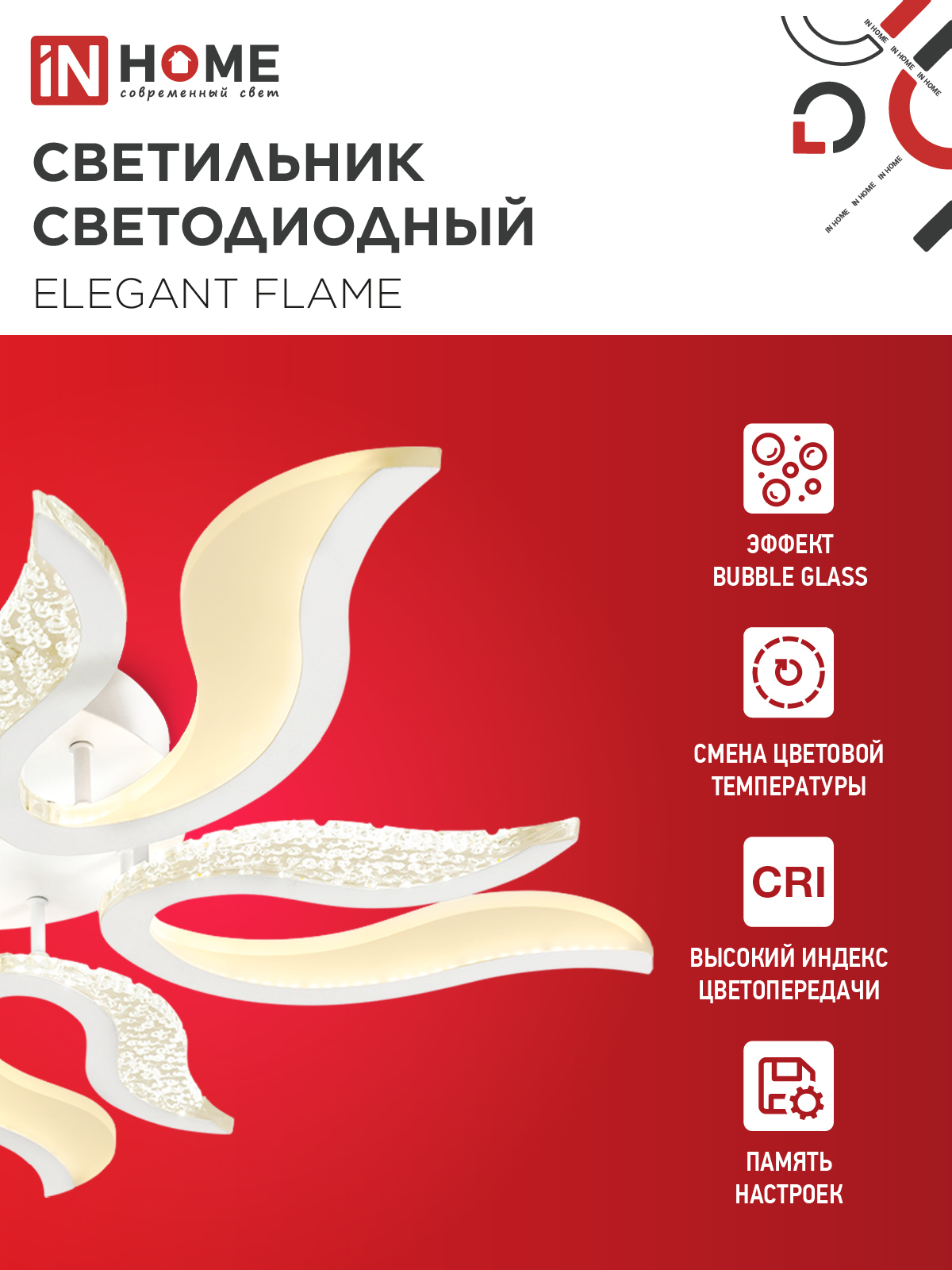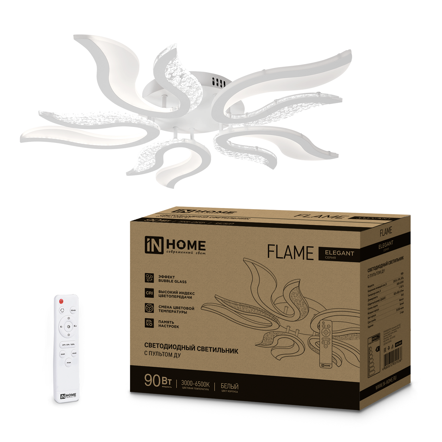 Светильник светодиодный ELEGANT FLAME 90Вт 230В 3000-6500K 7000Лм 820х802х87мм c пультом ДУ белый IN HOME