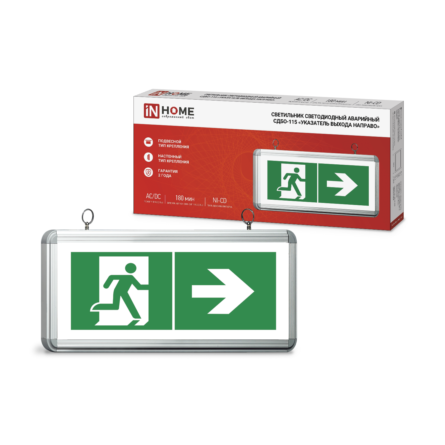 Светильник светодиодный аварийный СДБО-115 "УКАЗАТЕЛЬ ВЫХОДА НАПРАВО" 3 часа NI-CD AC/DC односторонний IN HOME