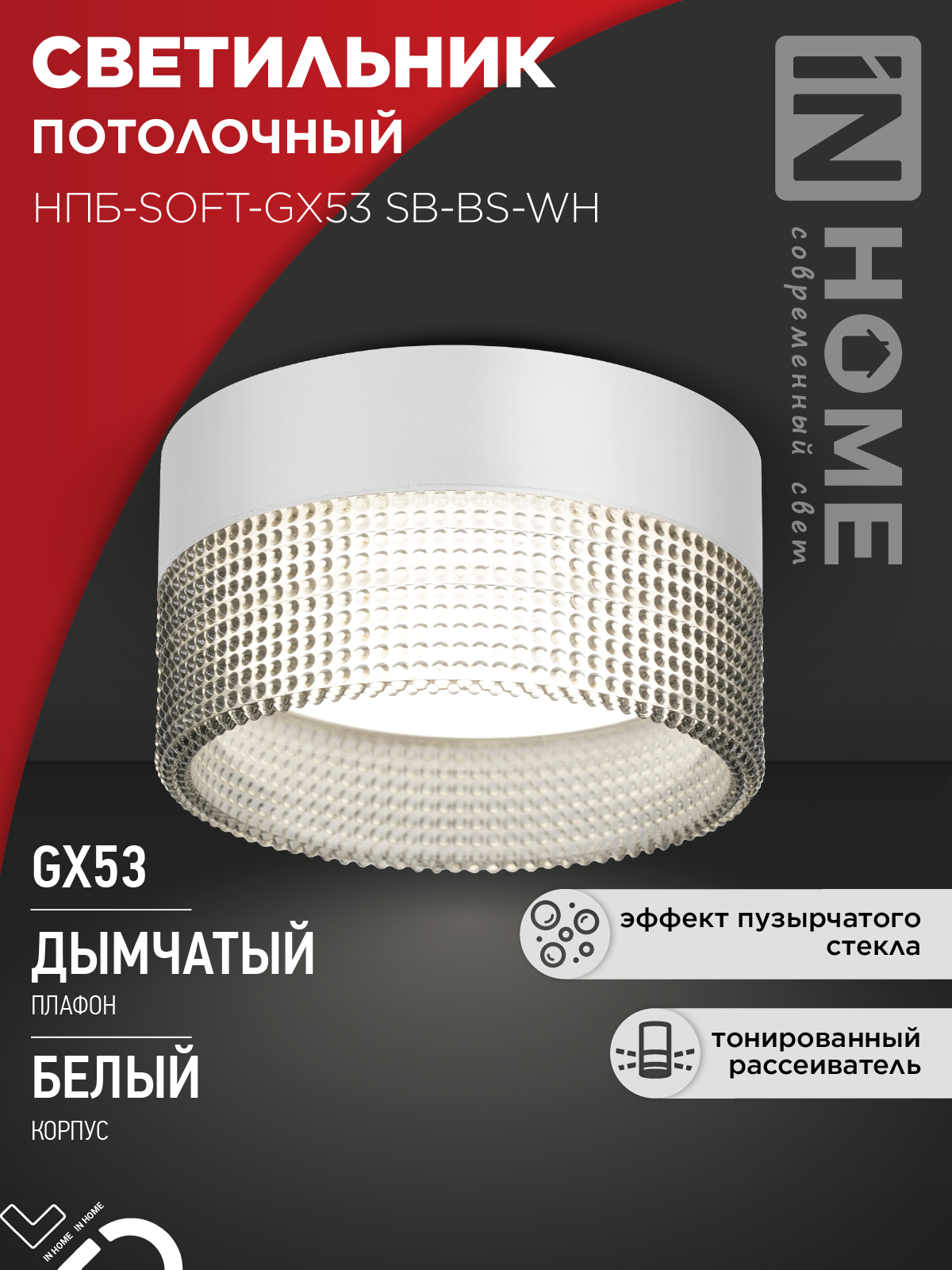 Светильник потолочный НПБ-SOFT-GX53 SB-BS-WH дымчатый плафон, 82х52мм белый IN HOME
