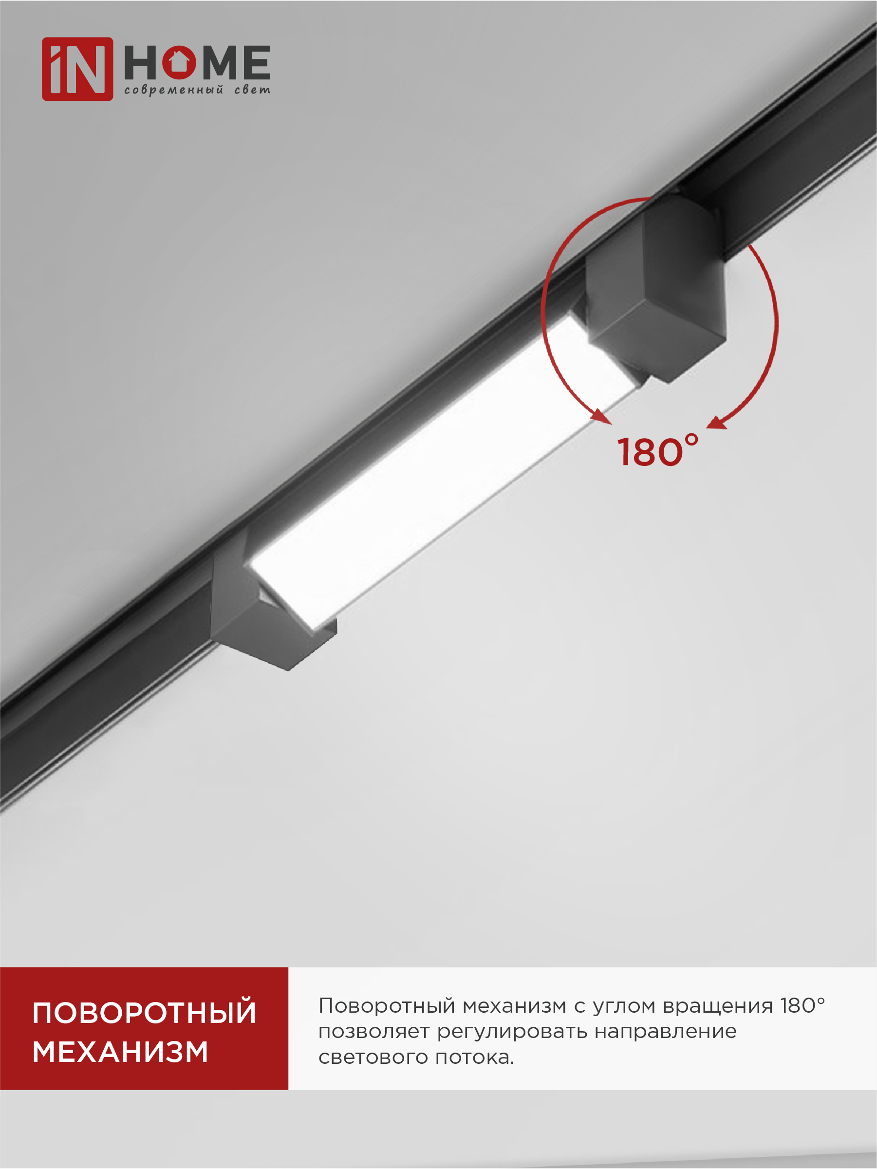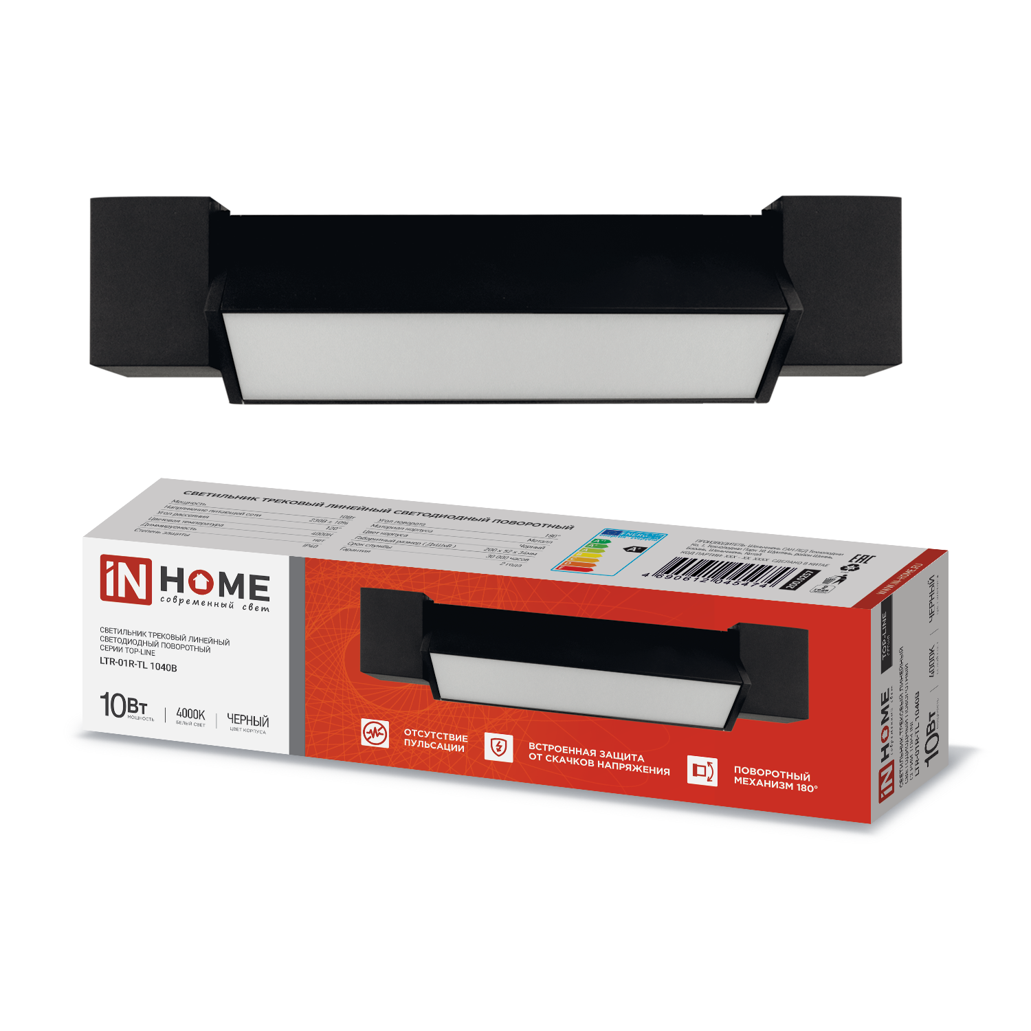 Светильник трековый линейный светодиодный поворотный LTR-01R-TL 10Вт 4000К 1000Лм 210мм IP40 120 градусов черный серии TOP-LINE IN HOME
