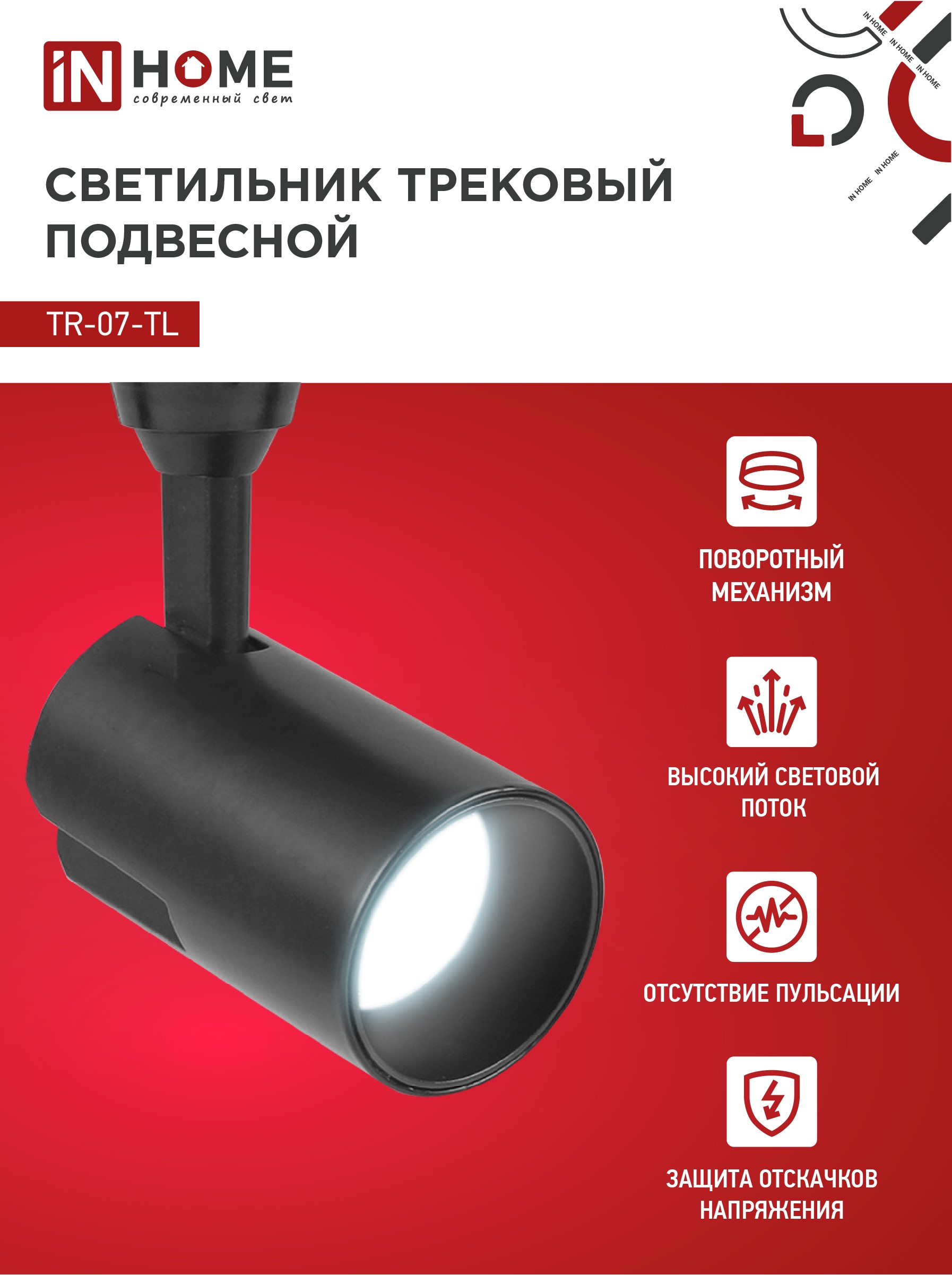 Светильник трековый светодиодный TR-07-TL 25Вт 6500К 2500Лм IP40 24 градуса черный серии TOP-LINE IN HOME