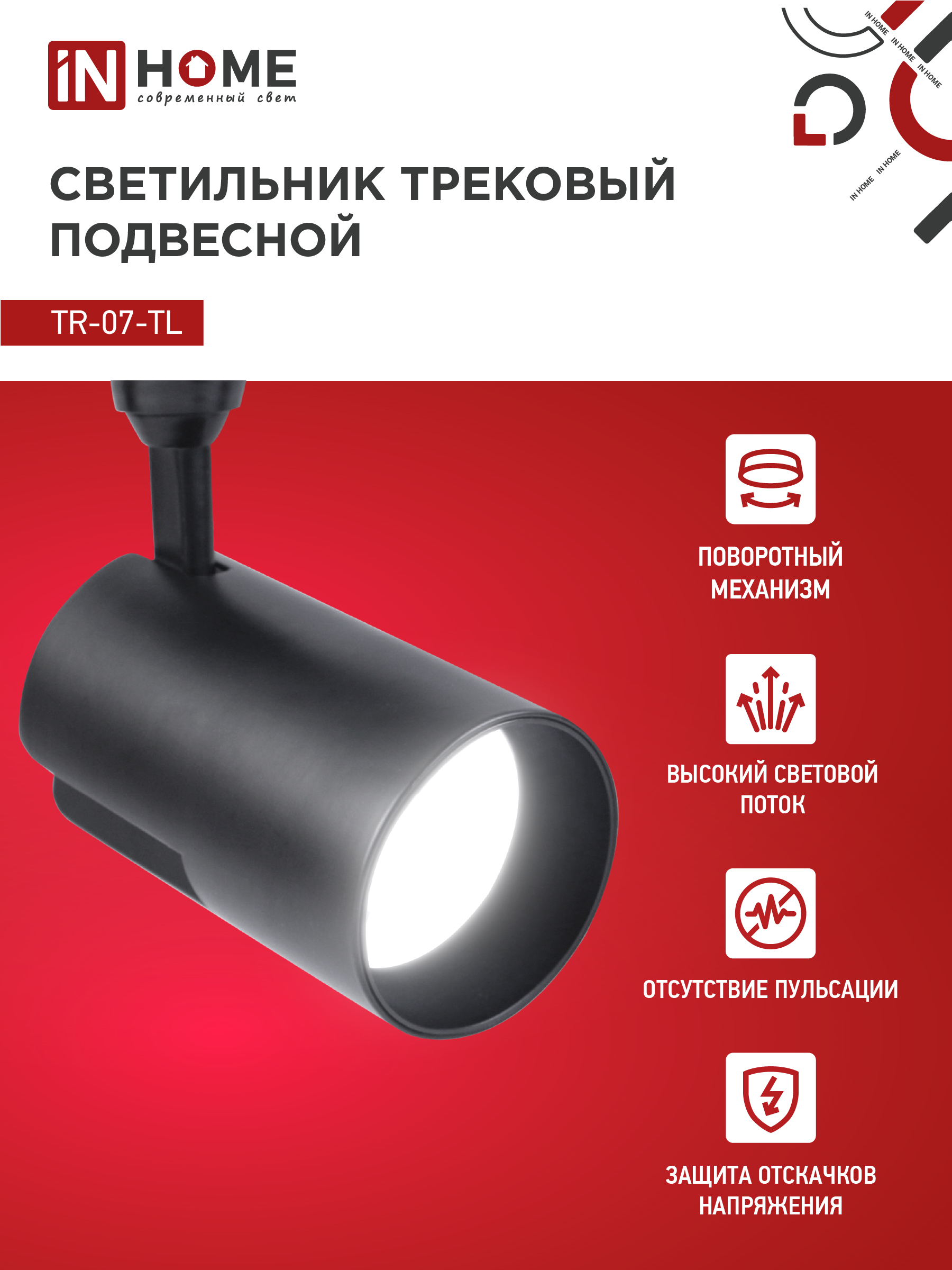 Светильник трековый светодиодный TR-07-TL 35Вт 4000К 3500Лм IP40 24 градуса черный серии TOP-LINE IN HOME