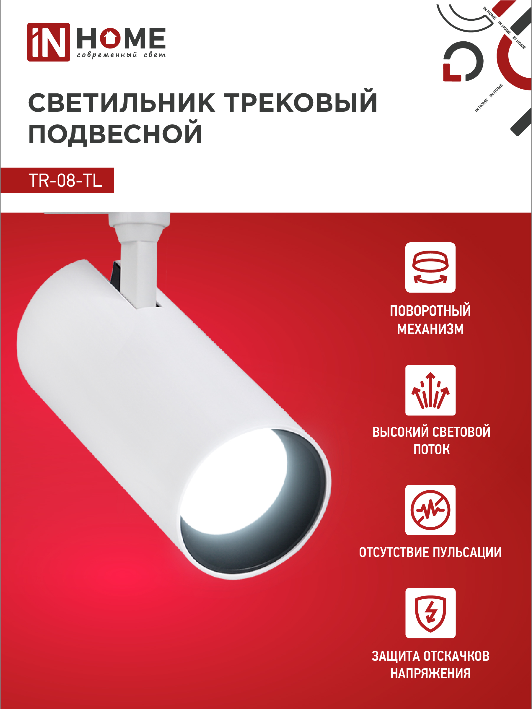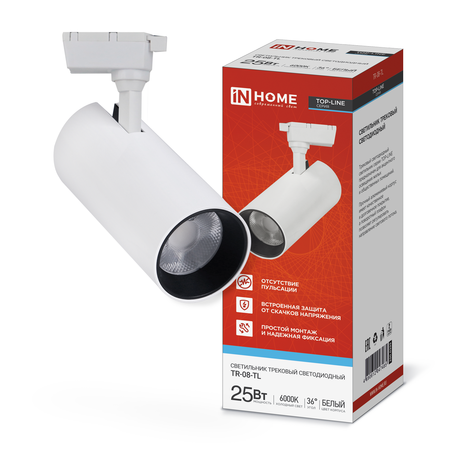 Светильник трековый светодиодный TR-08-TL 25Вт 6000К 2500Лм IP40 36 градусов белый серии TOP-LINE IN HOME