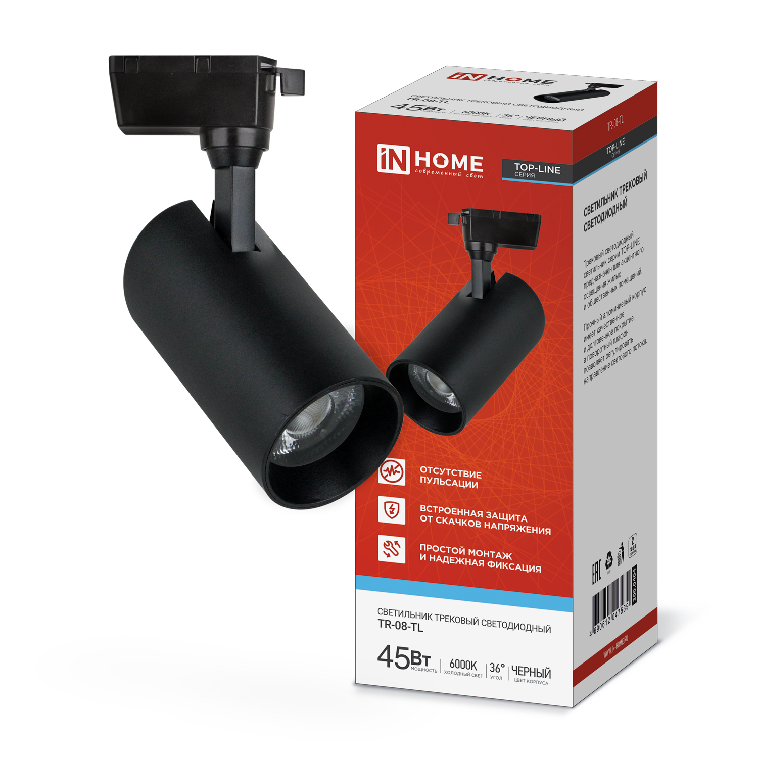 Светильник трековый светодиодный TR-08-TL 45Вт 6000К 4500Лм IP40 36 градусов черный серии TOP-LINE IN HOME