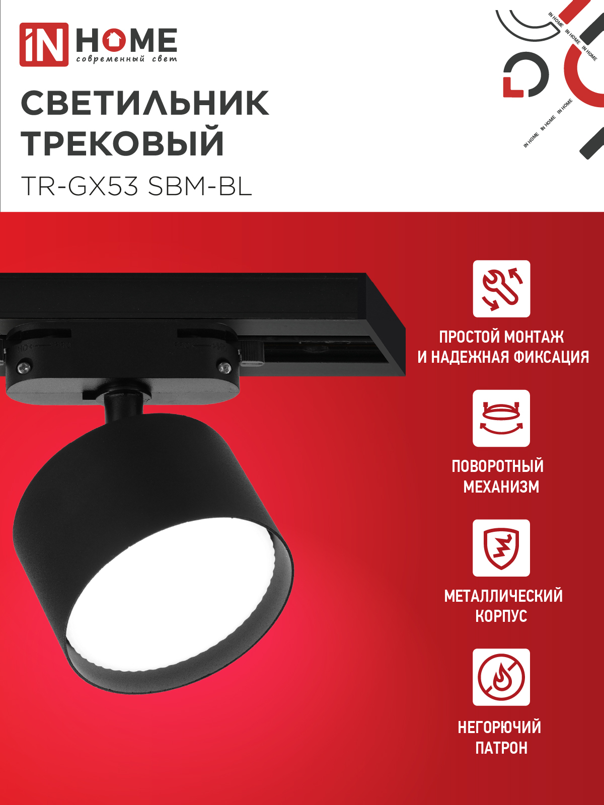 Светильник трековый TR-GX53 SBM-BL черный IN HOME