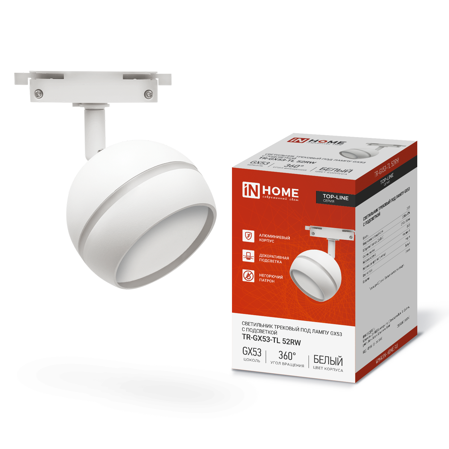 Светильник трековый TR-GX53-TL 52RW под лампу GX53 с подсветкой белый IN HOME