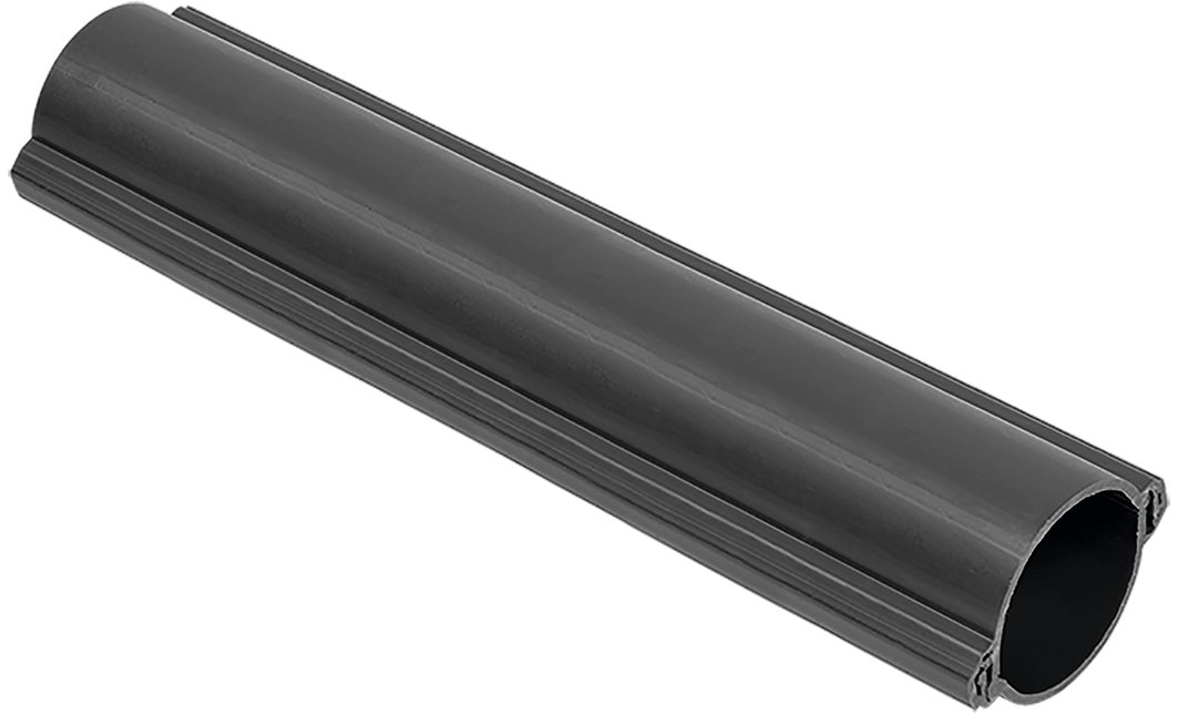 При монтаже кабель укладывается на нижнюю часть трубы, верхняя часть затем защелкивается.