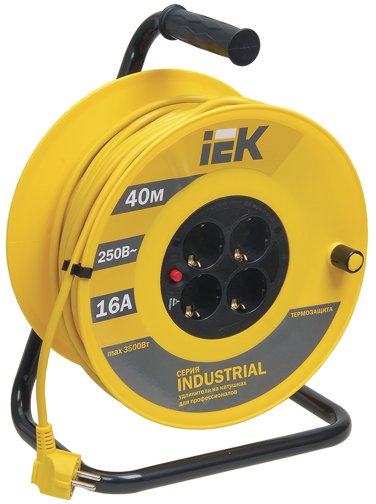Катушка УК40 с т/з 4 места 2P+PE/40м 3х1,5 мм2 "Industrial" IEK