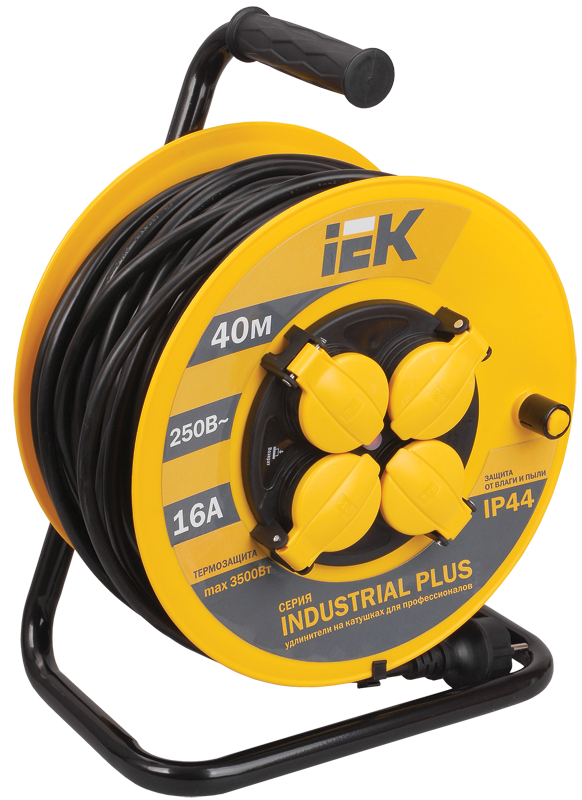 Катушка УК40 с т/з 4 места 2Р+PЕ/40метров 3х1,5мм2 IP44 "Industrial plus"