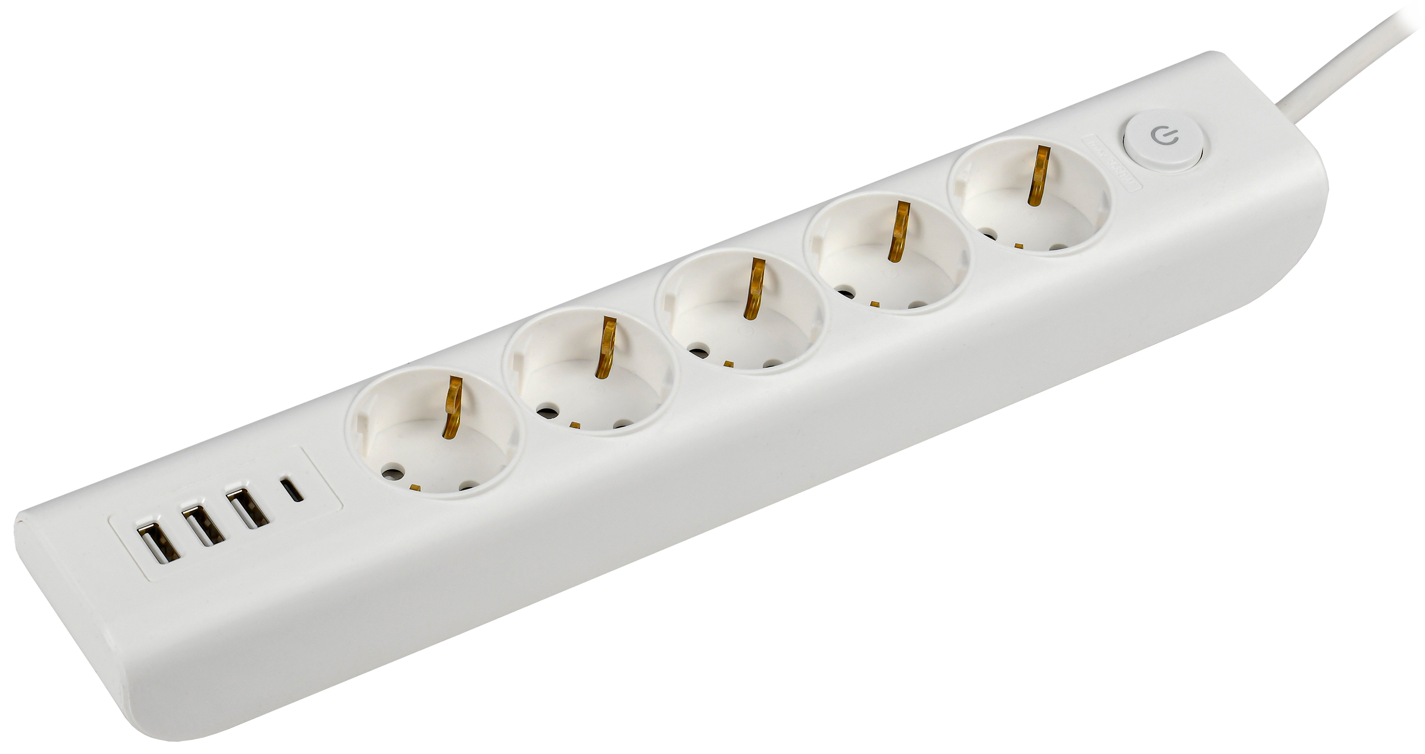 Удлинитель У05В 5 мест с з/к 2м 3х1мм2 16А/250В USBх4 белый MODERN IEK
