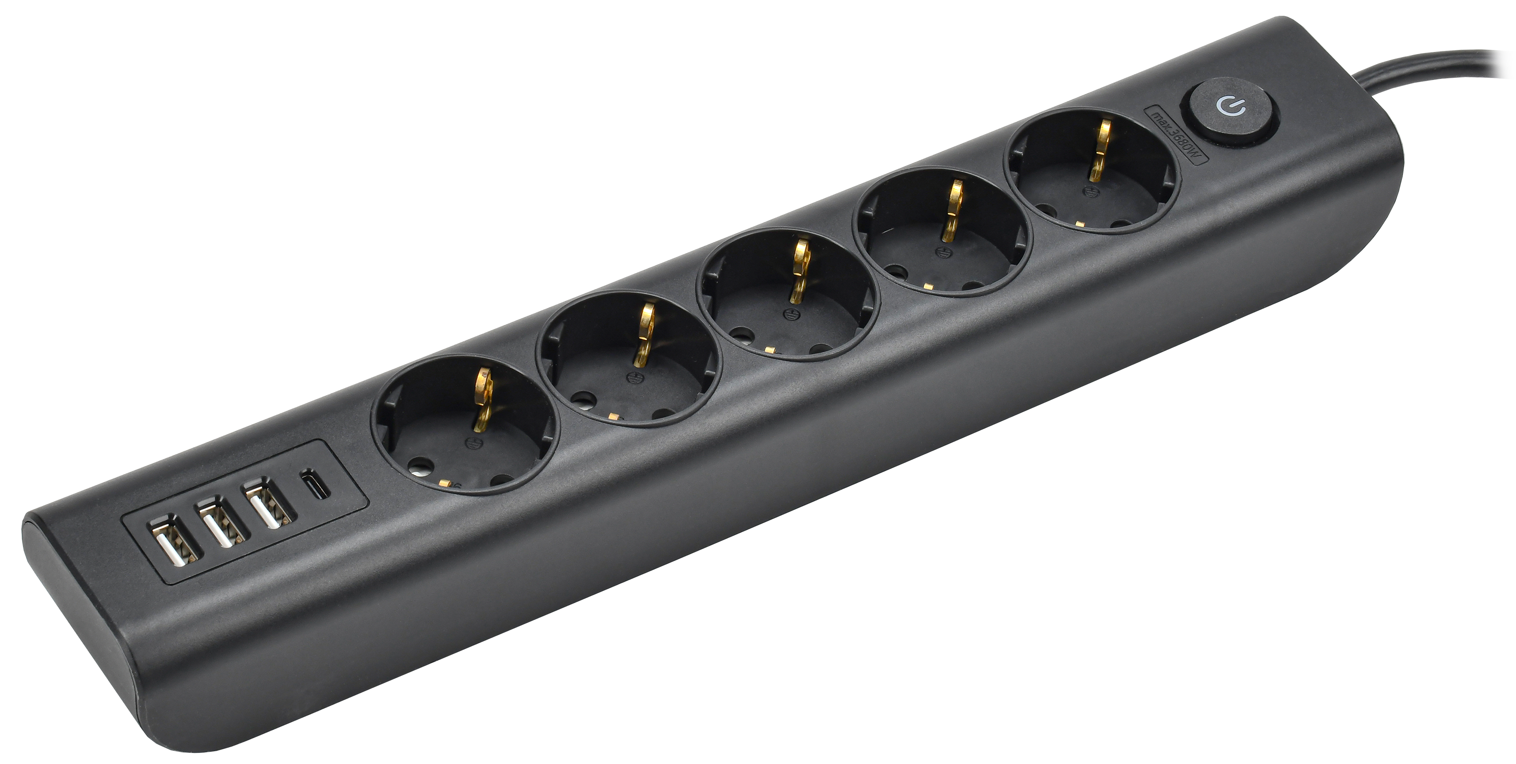 Удлинитель У05В 5 мест с з/к 2м 3х1мм2 16А/250В USBх4 черный MODERN IEK