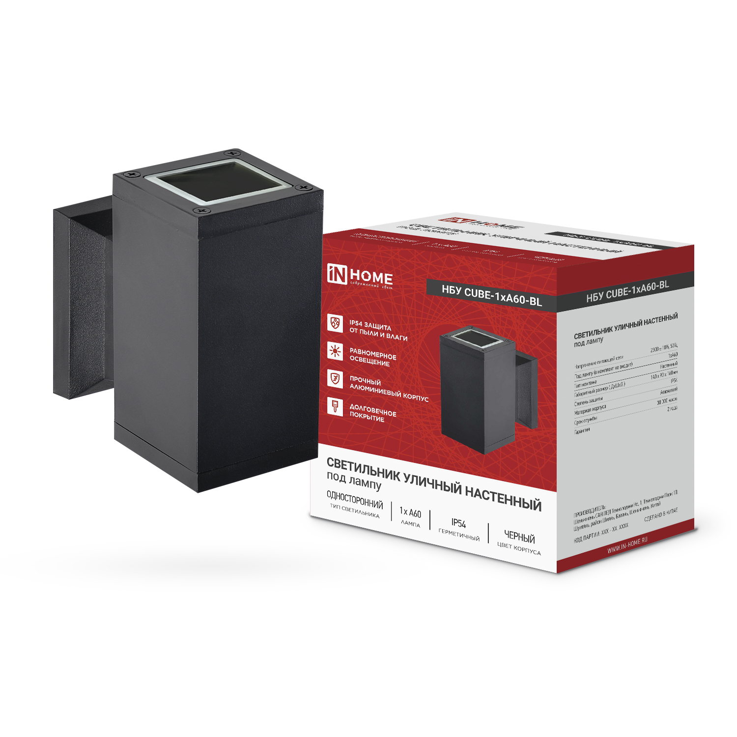 Светильник уличный настенный односторонний НБУ CUBE-1хA60-BL алюминиевый черный IP54 IN HOME