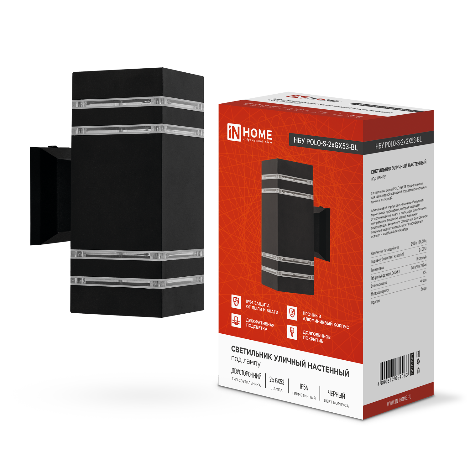Светильник уличный настенный двусторонний НБУ POLO-S-2xGX53-BL алюминиевый черный IP54 IN HOME