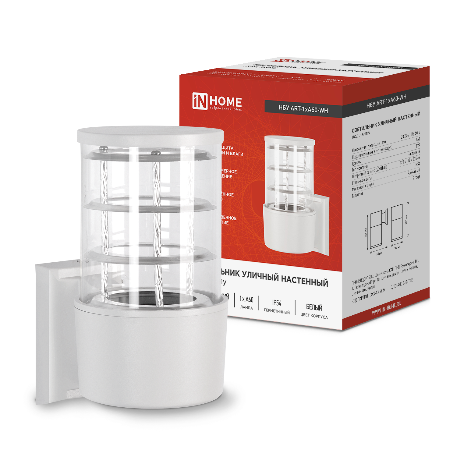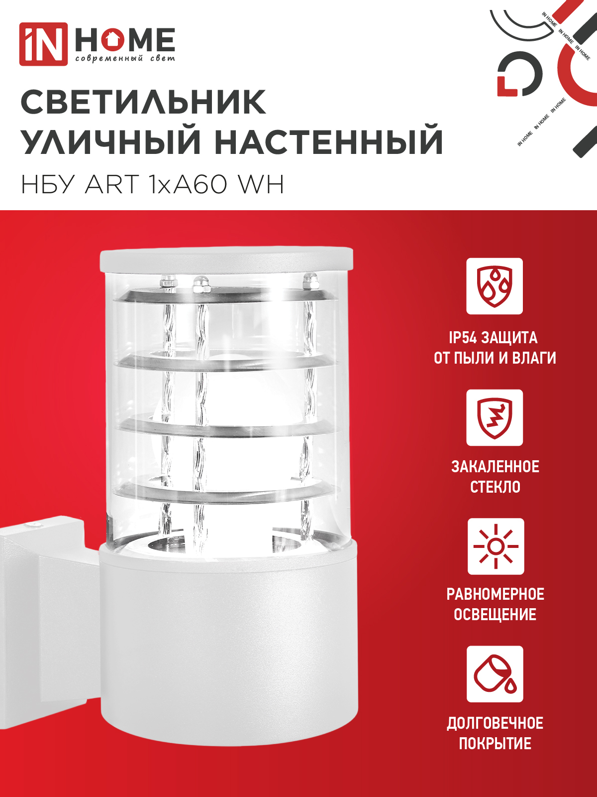 Светильник уличный настенный односторонний НБУ ART-1хA60-WH алюминиевый белый IP54 IN HOME
