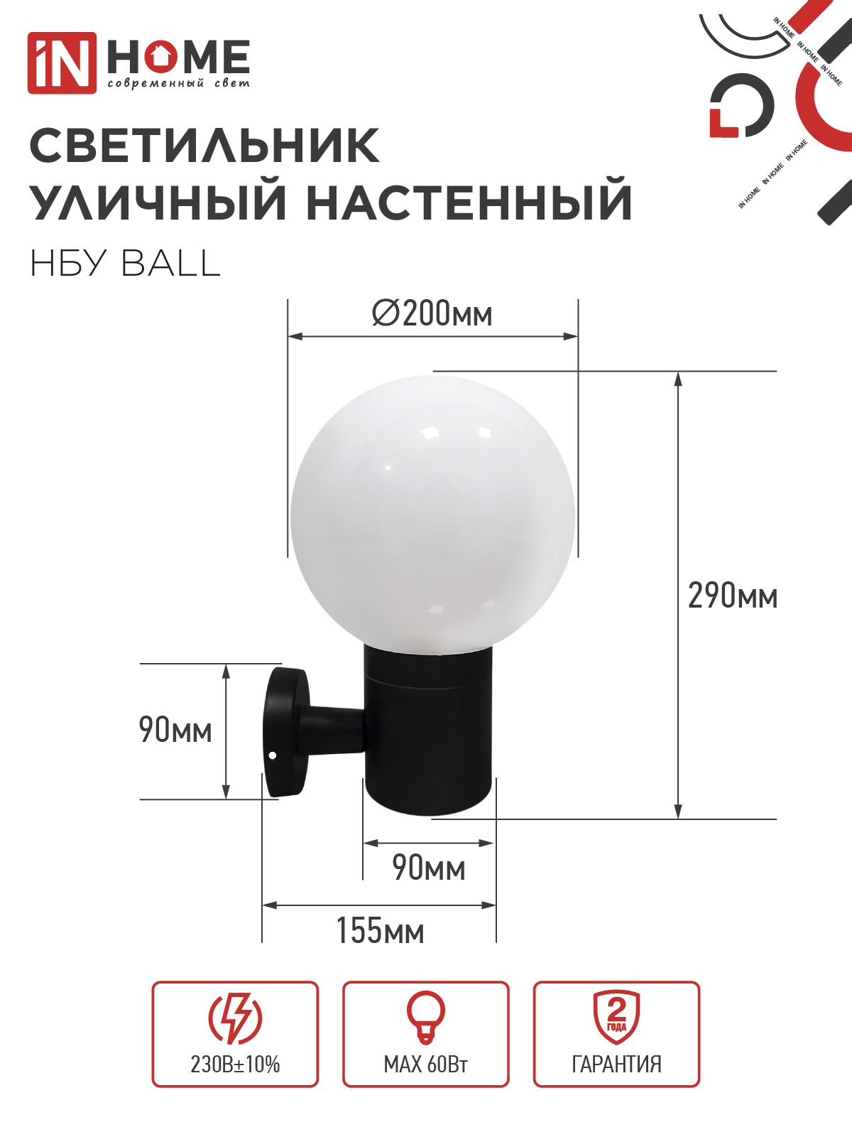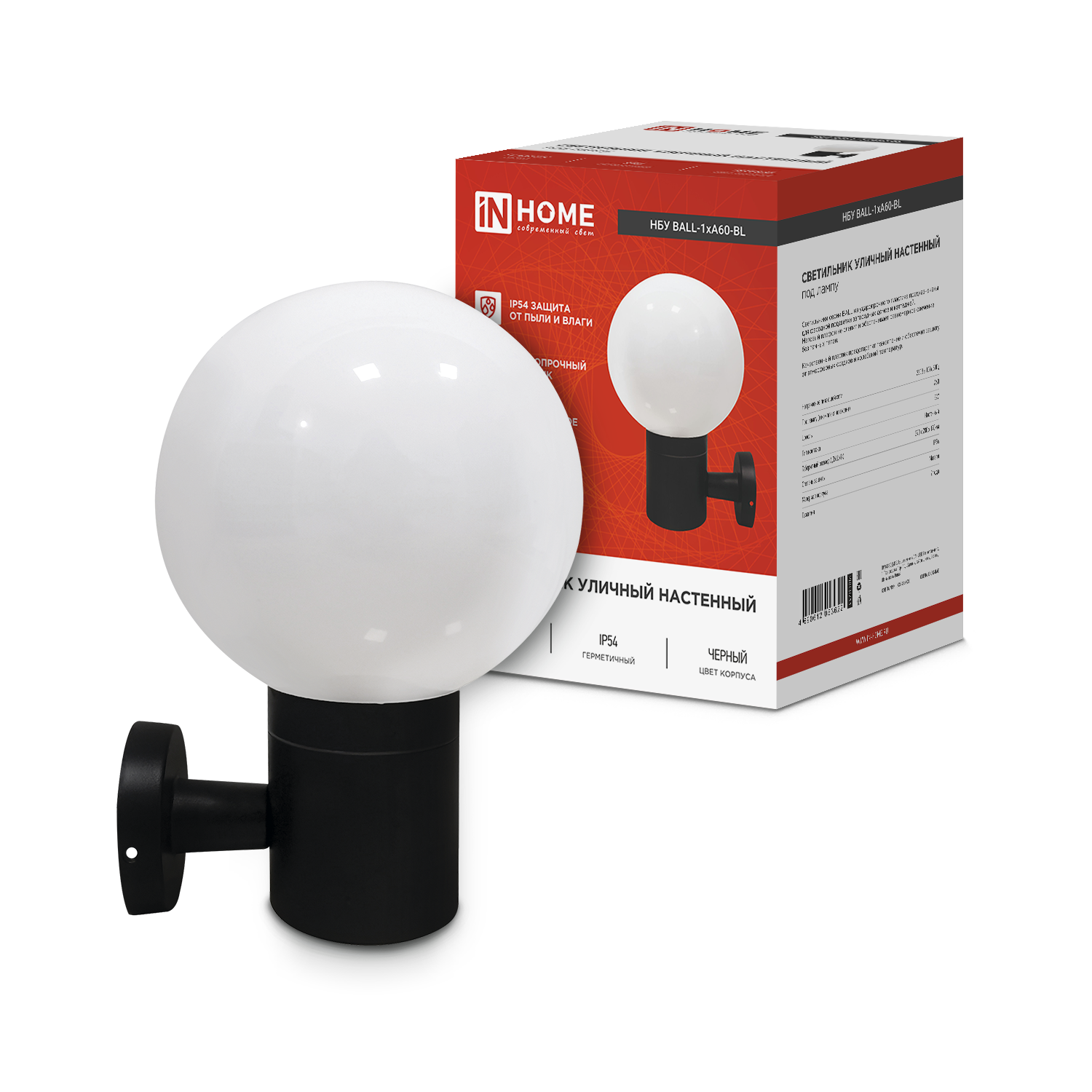 Светильник уличный настенный односторонний НБУ BALL-1хA60-BL алюминиевый черный IP54 IN HOME