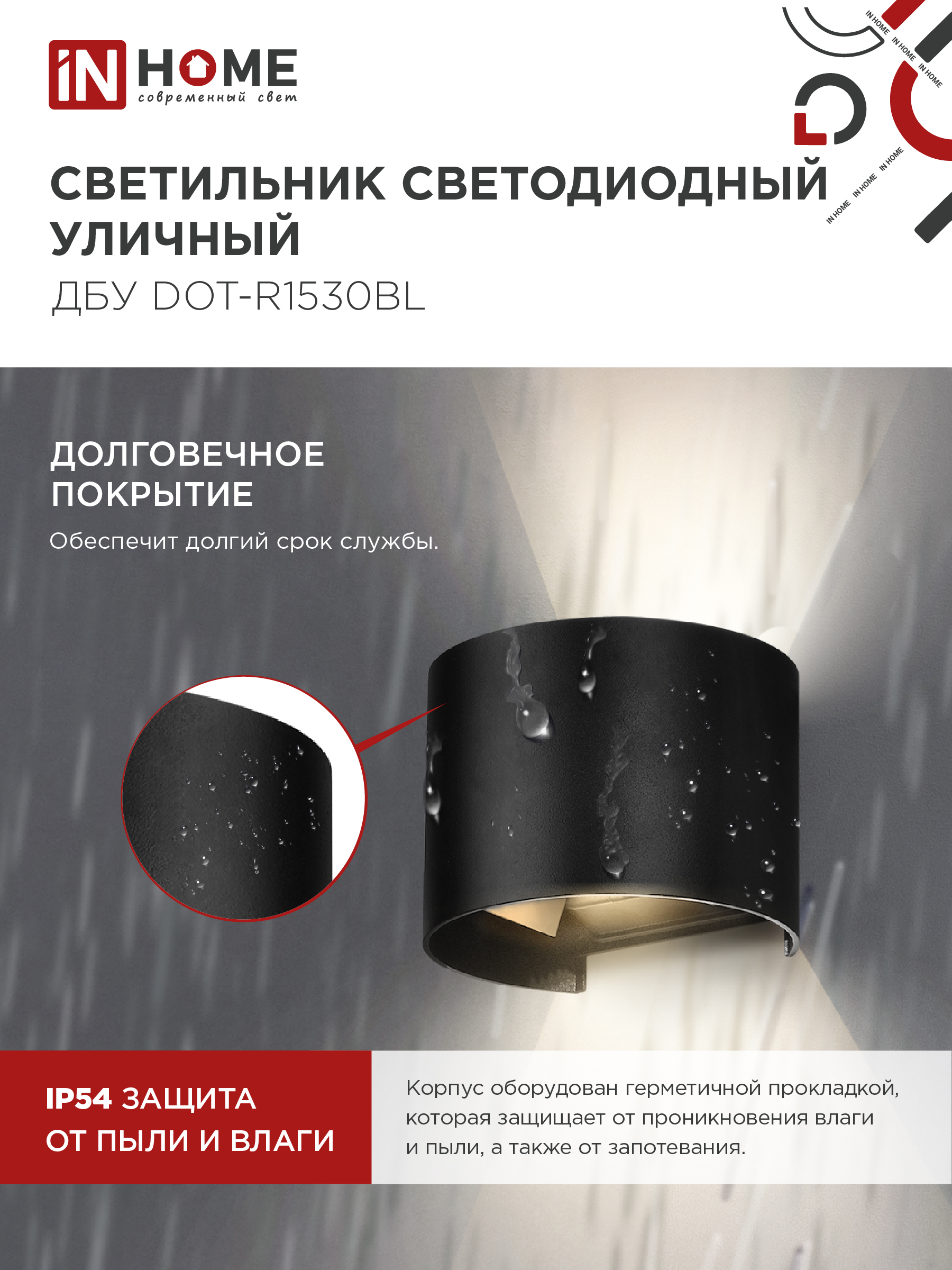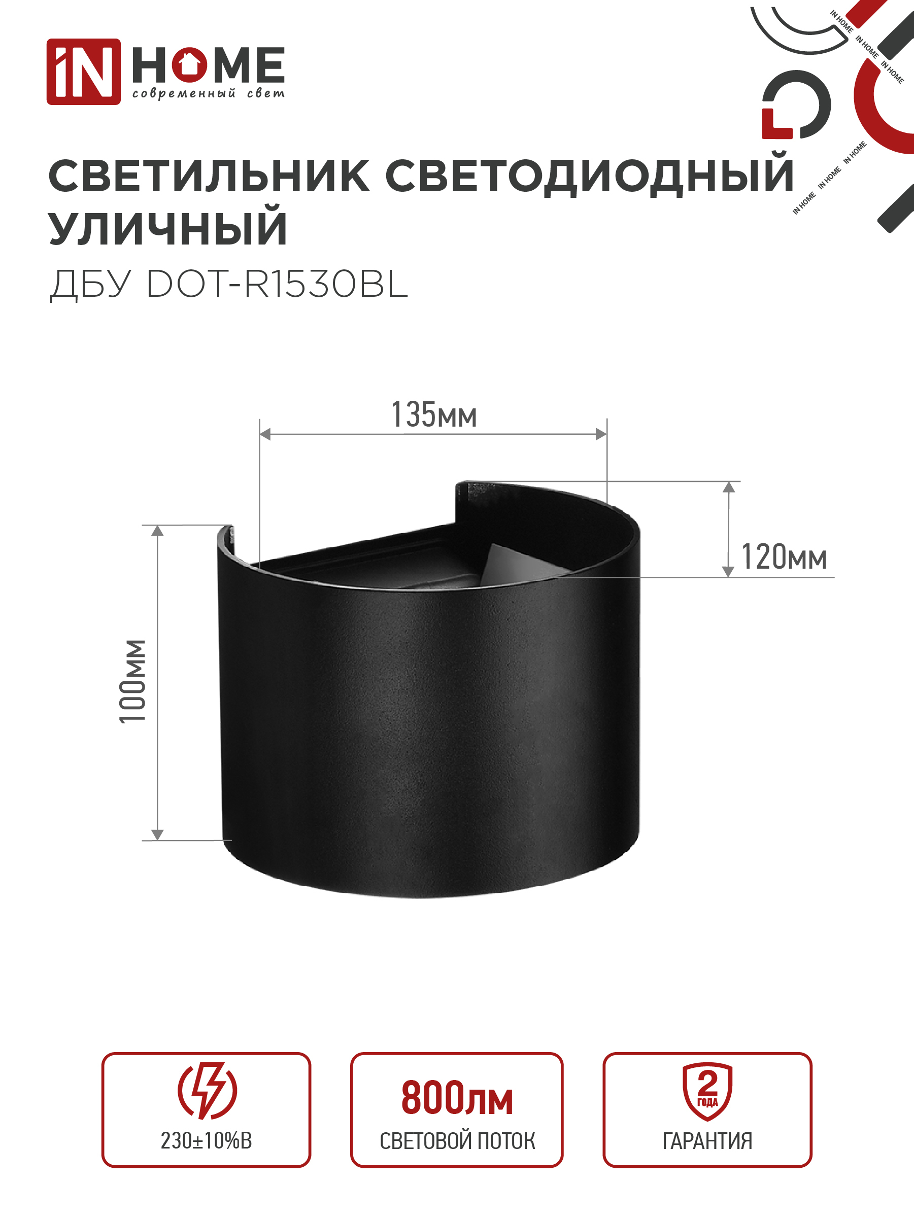 Светильник уличный светодиодный ДБУ DOT-R15B 15Вт 3000К IP54 круглый черный IN HOME