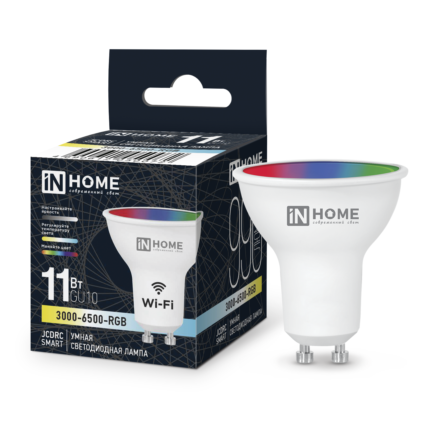 Лампа светодиодная LED-JCDRC-RGBW-SMART 11Вт 230В димм. GU10 3000-6500К 990Лм IN HOME