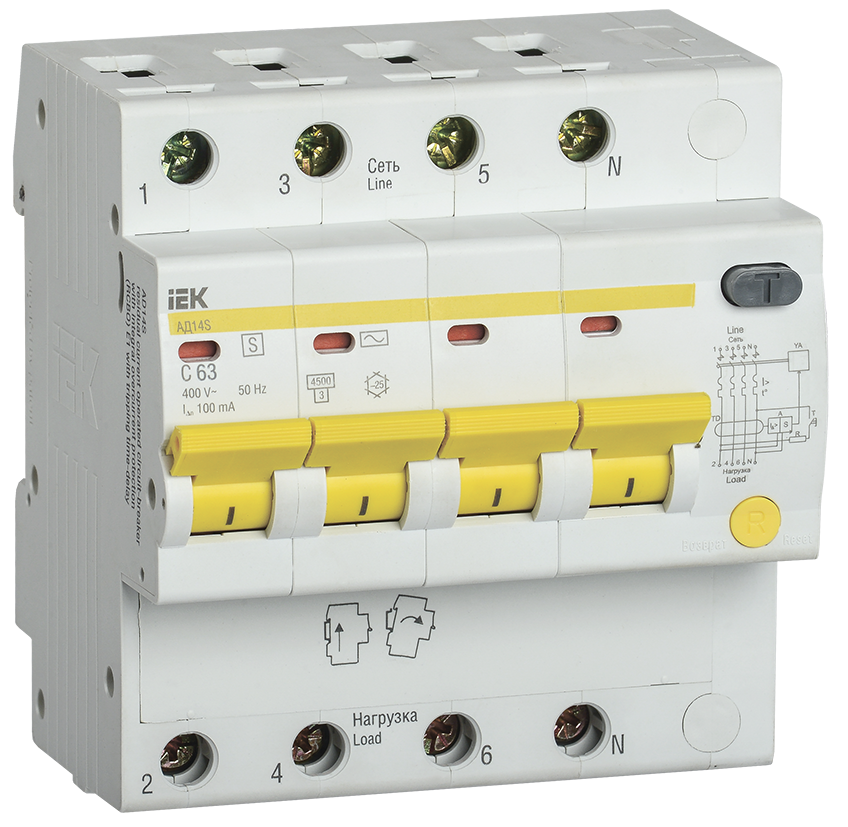 Дифференциальный автомат селективный АД14S 4Р 63А 100мА IEK