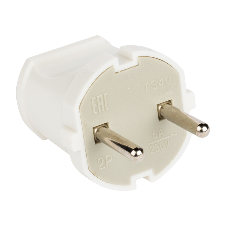 Вилка прямая без заземления белая 6А 250В EKF PROxima