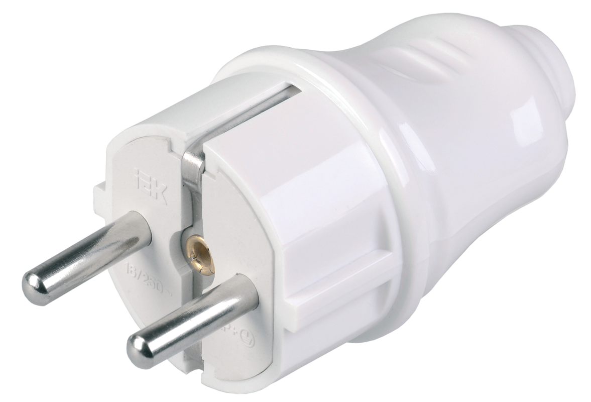 Вилка разборная IEK прямая с заземлением ВПп10-01-Ст белая