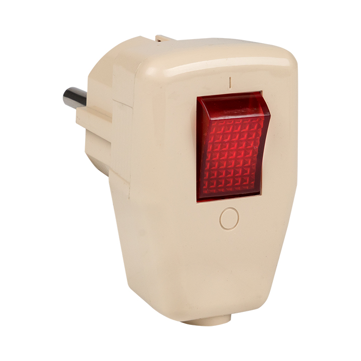 Вилка угловая с выключателем с/з бежевая 16А 250В EKF