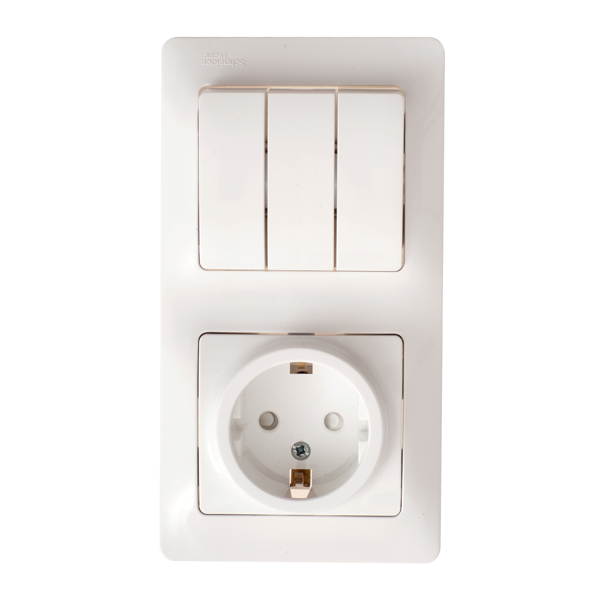 Выключатель трехклавишный с розеткой Glossa SE белый