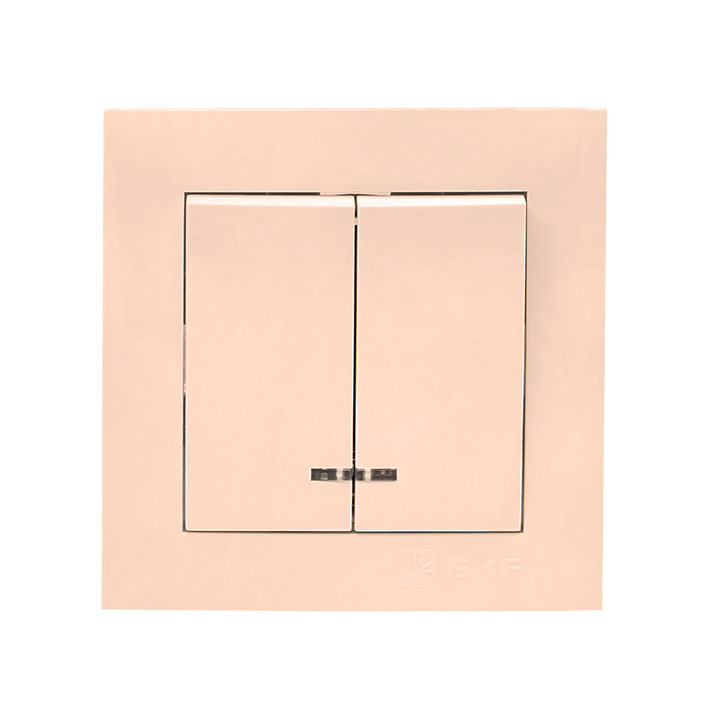 Валенсия выключатель 2-клавишный 10А кремовый с индикатором EKF PROxima