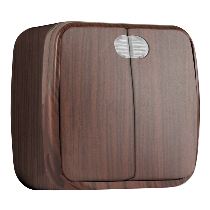 Выключатель 2-клавишный ОП Минск 10А с индикатором тёмное дерево EKF