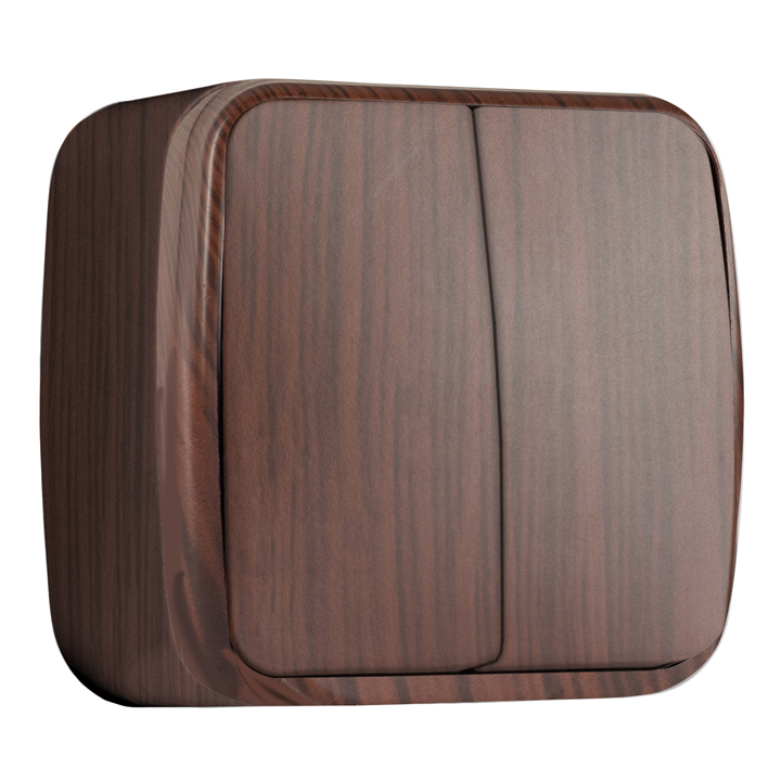 Выключатель 2-клавишный ОП Минск 10А тёмное дерево EKF